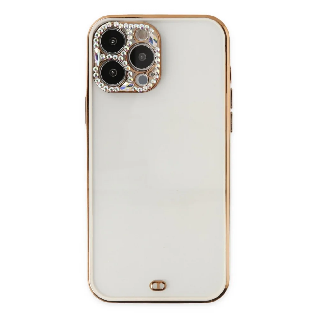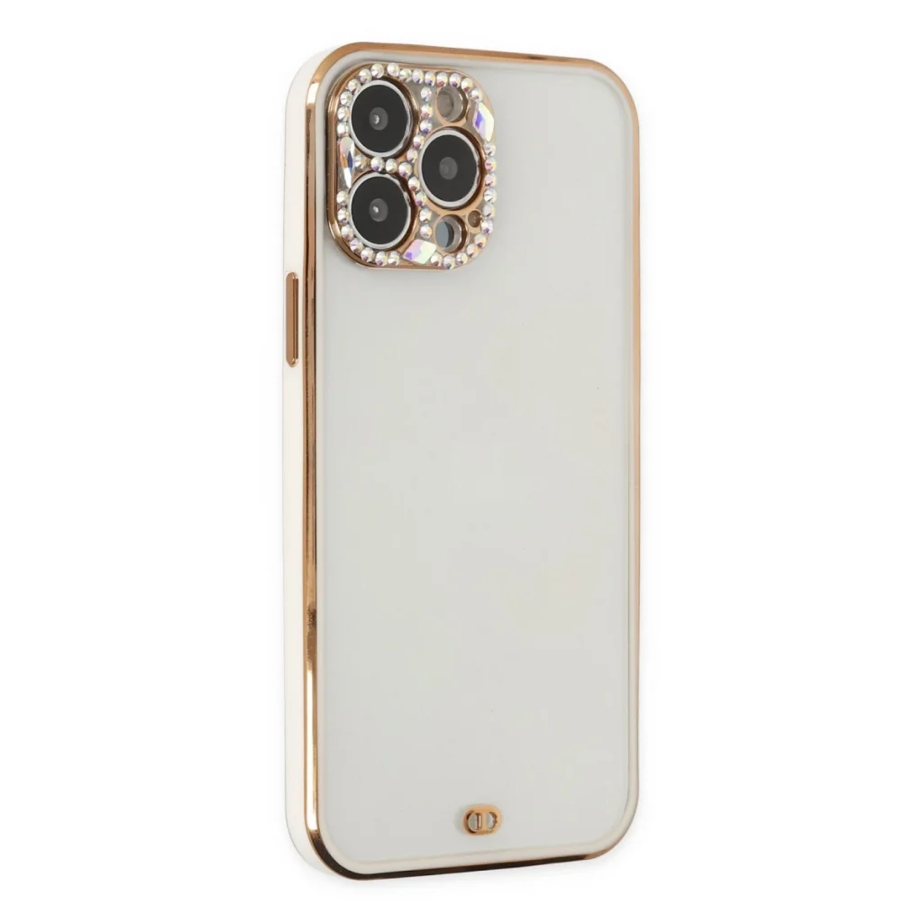 BUĞZ İphone 13 Pro Kılıf Liva Taşlı Silikon - Beyaz
