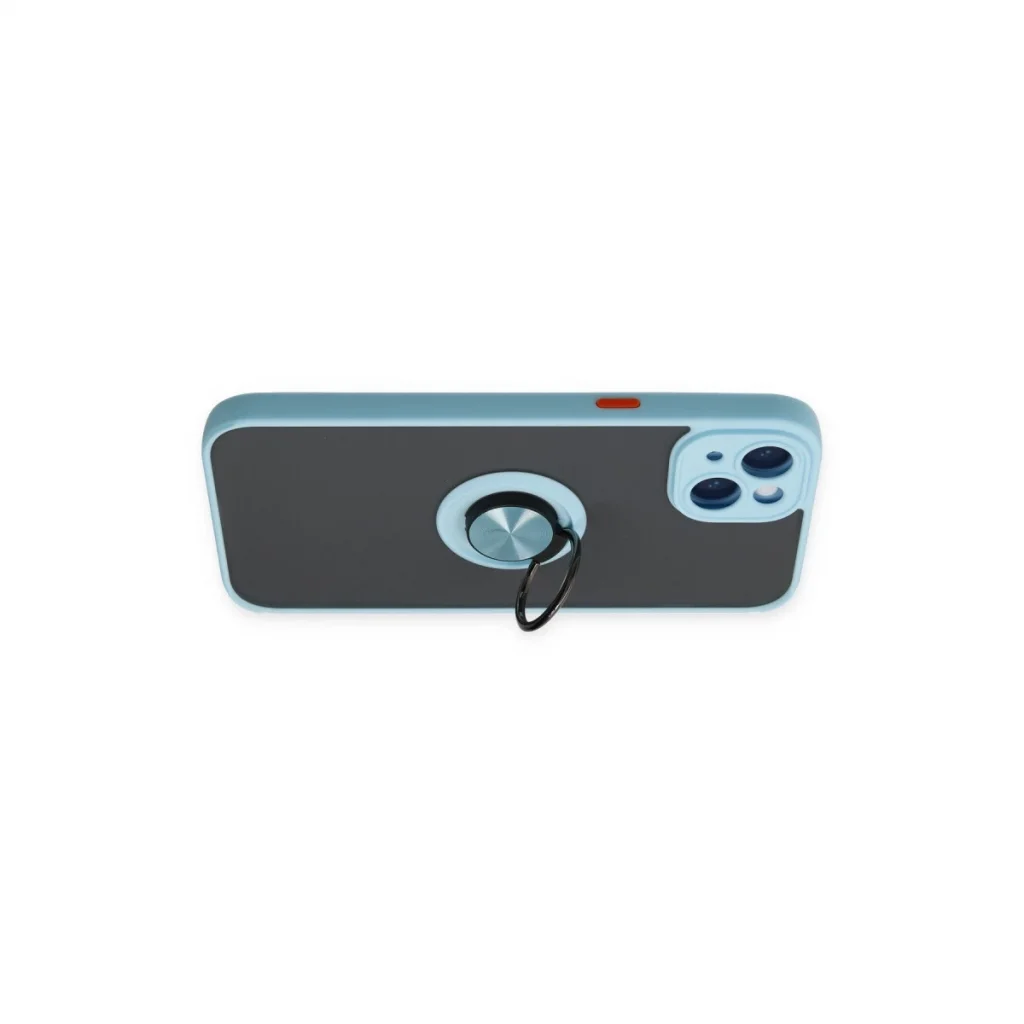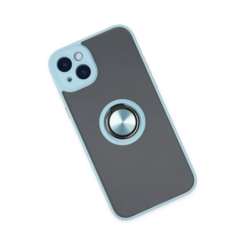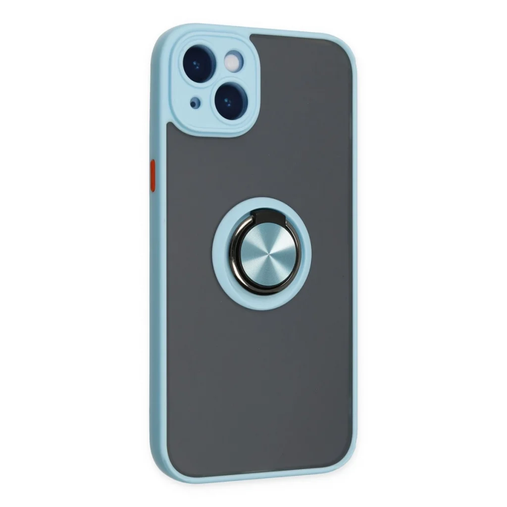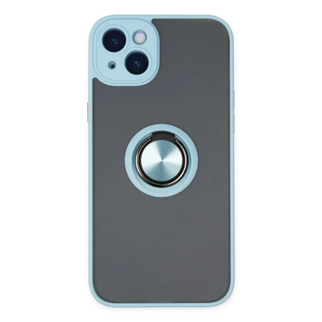 İphone 14 Kılıf Montreal Yüzüklü Silikon Kapak - Buz Mavi