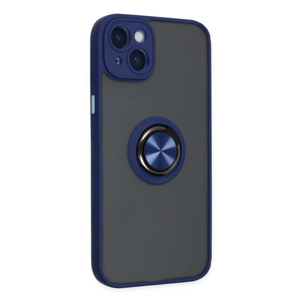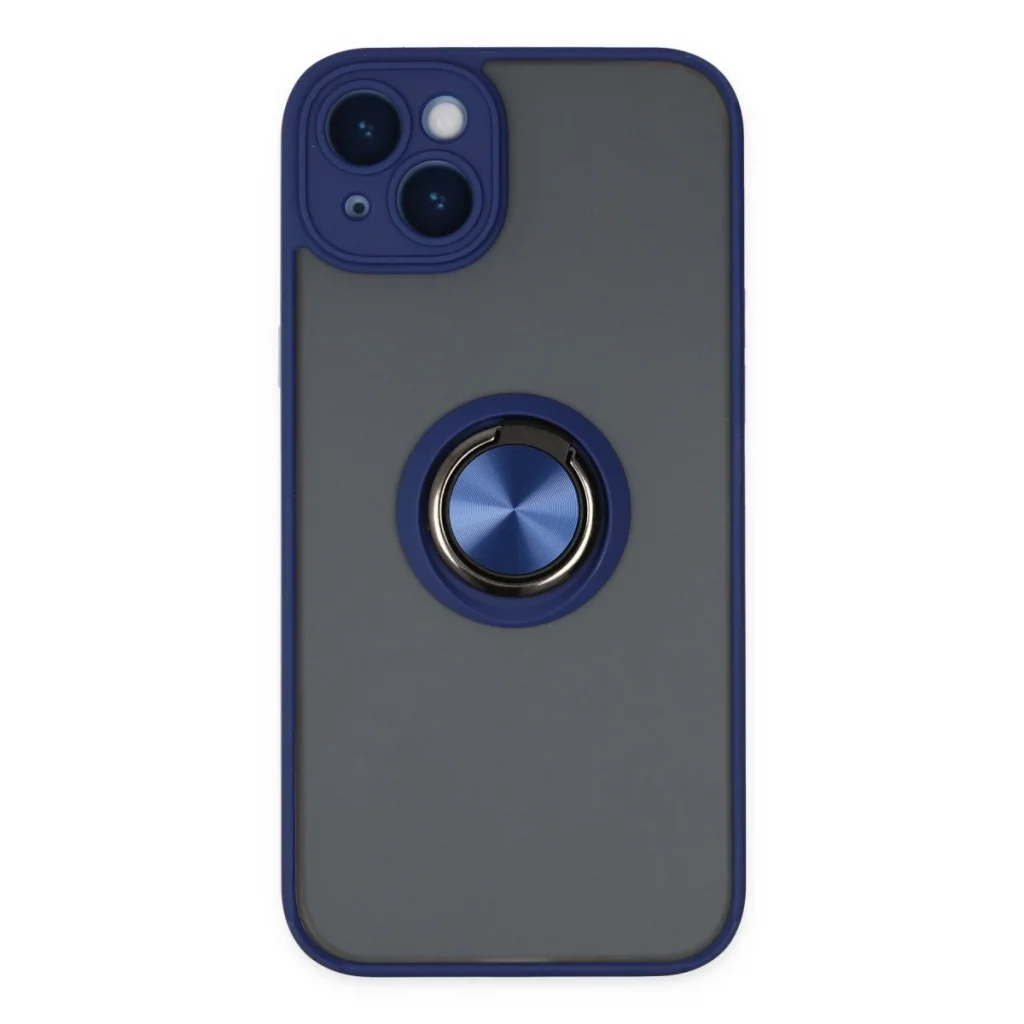 İphone 14 Kılıf Montreal Yüzüklü Silikon Kapak - Lacivert