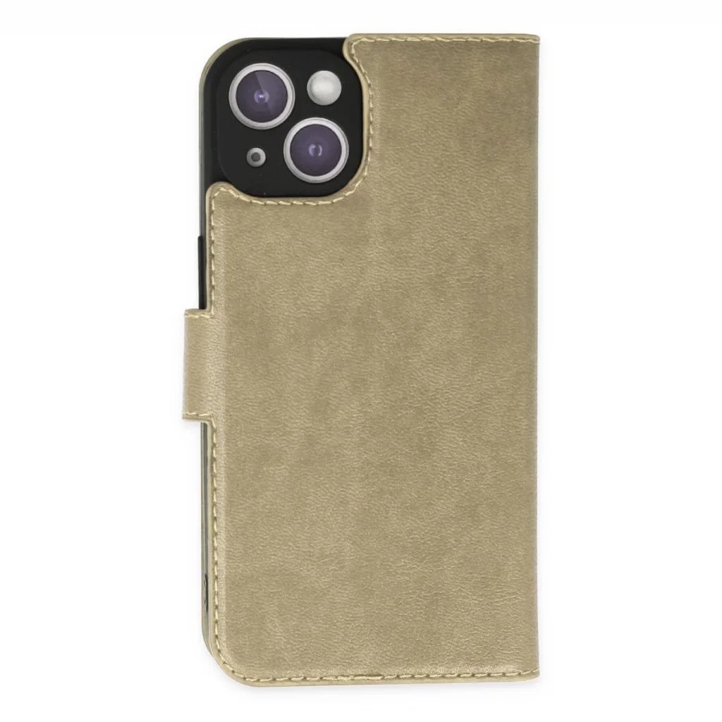 BUĞZ İphone 14 Kılıf Trend S Plus Kapaklı Kılıf - Gold