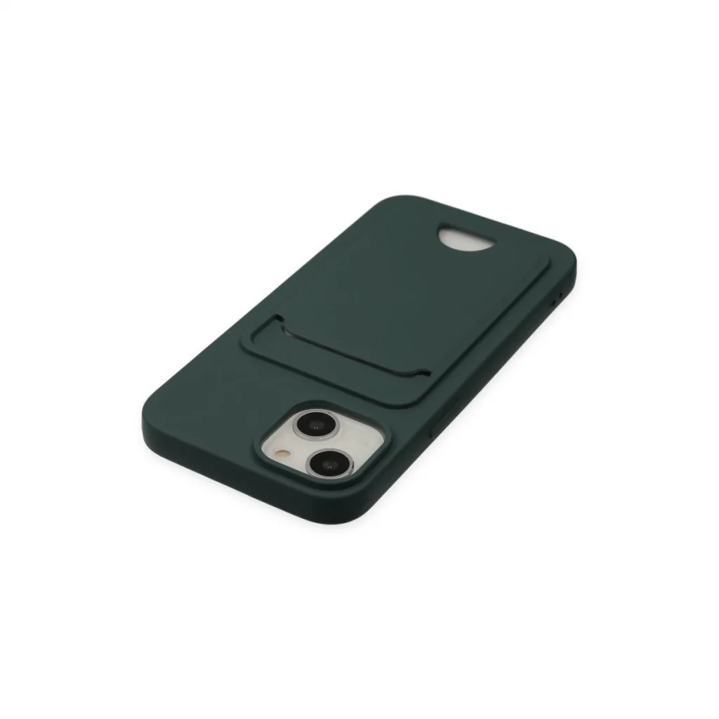 İphone 14 Plus Kılıf Kelvin Kartvizitli Silikon - Koyu Yeşil