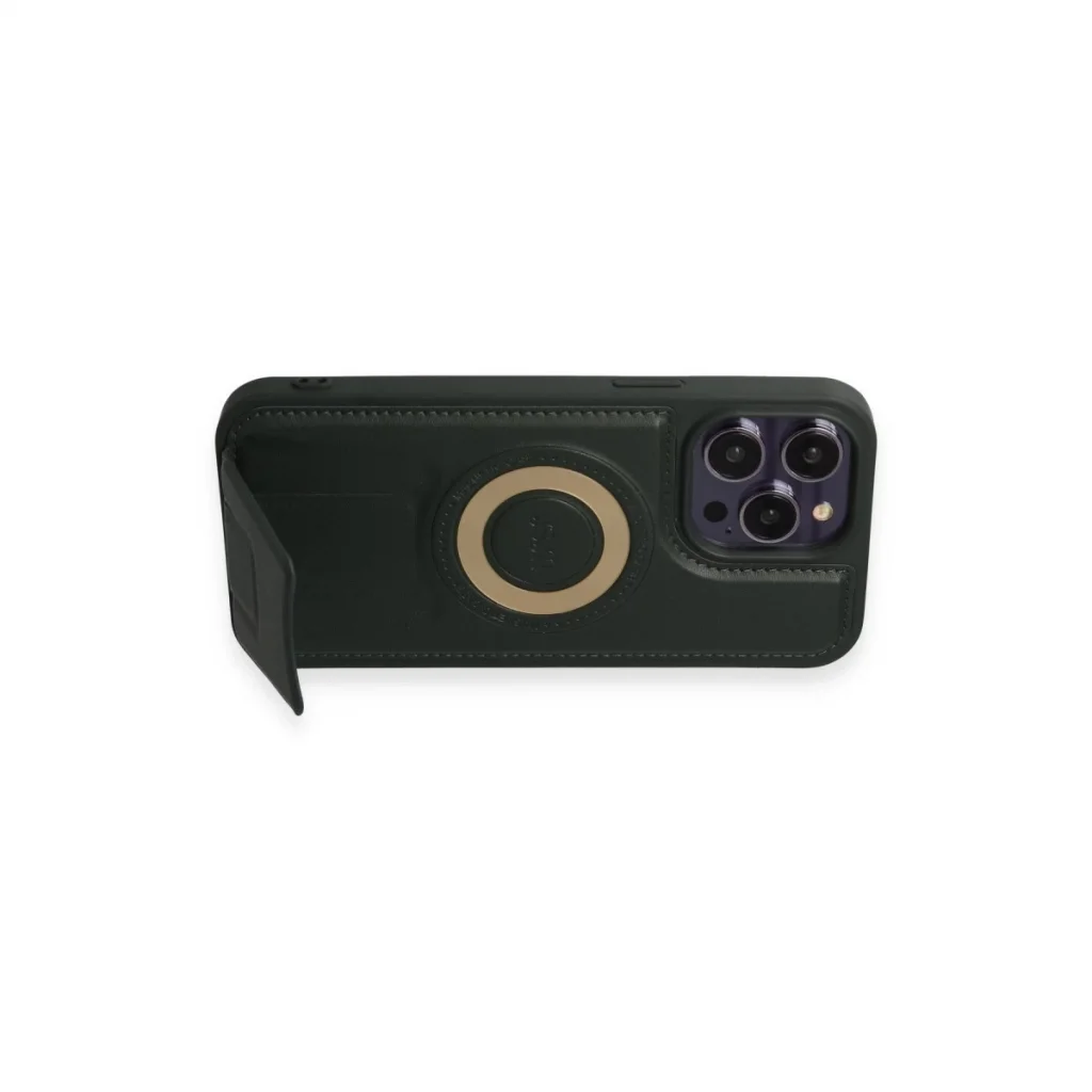 İphone 14 Pro Kılıf Merkür Magneticsafe Standlı Kapak - Koyu Yeşil
