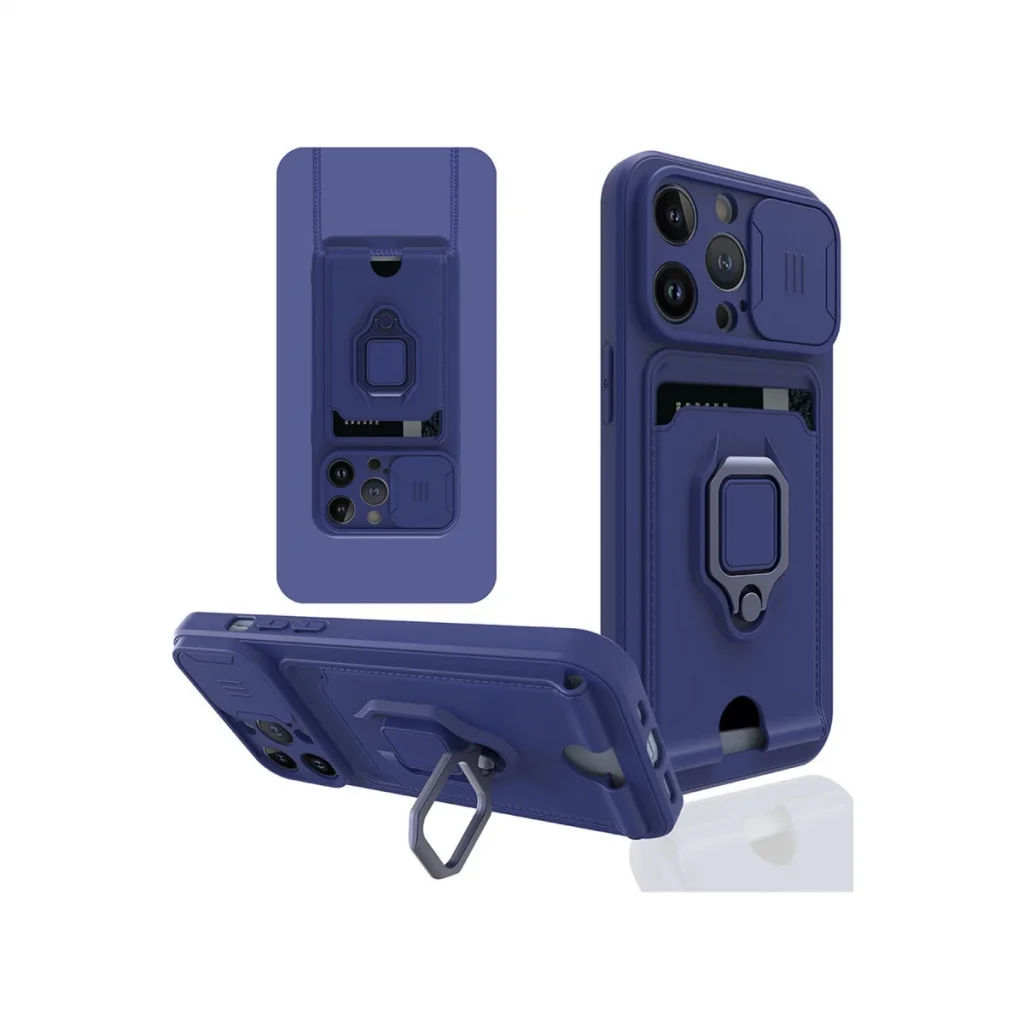 İphone 14 Pro Kılıf Zuma Kartvizitli Yüzüklü Silikon - Lacivert