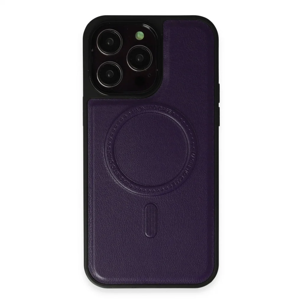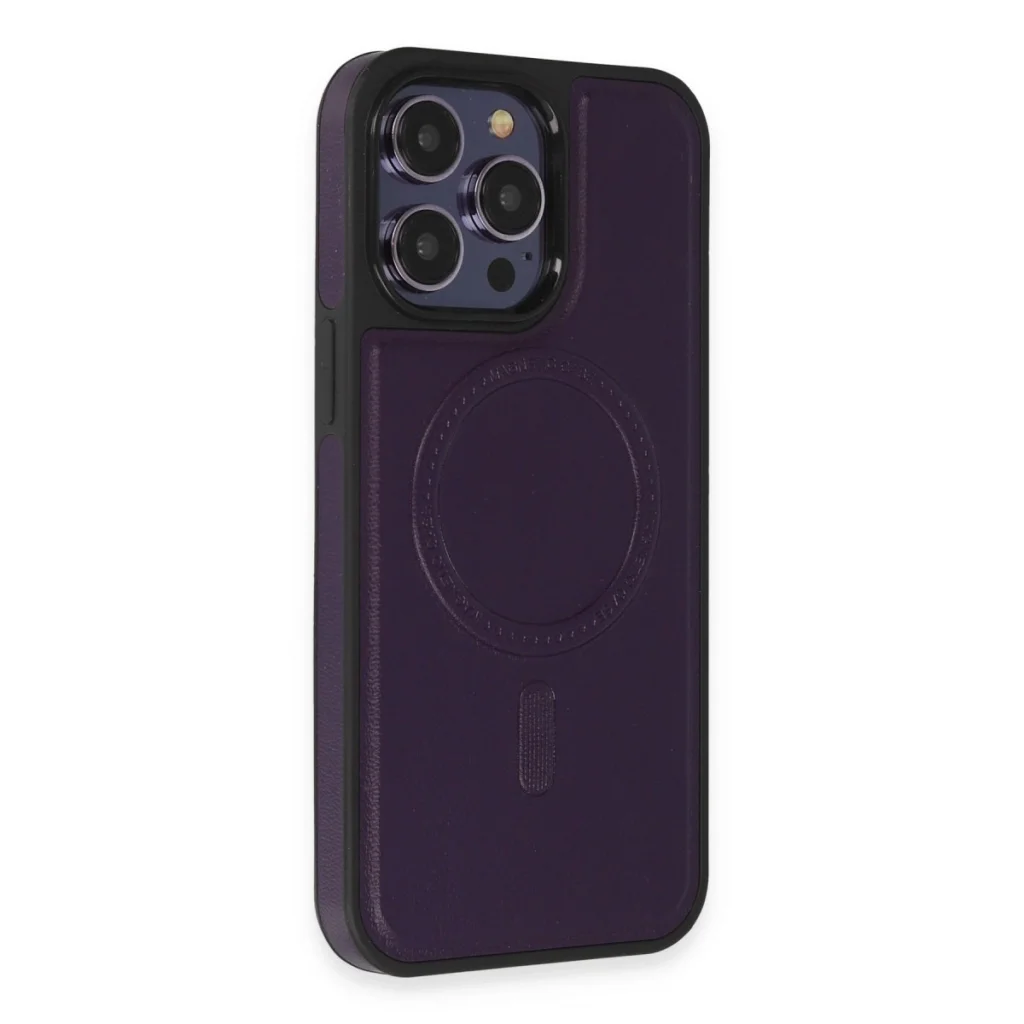 İphone 14 Pro Max Kılıf Ozzi Magsafe Deri Kapak - Derin Mor