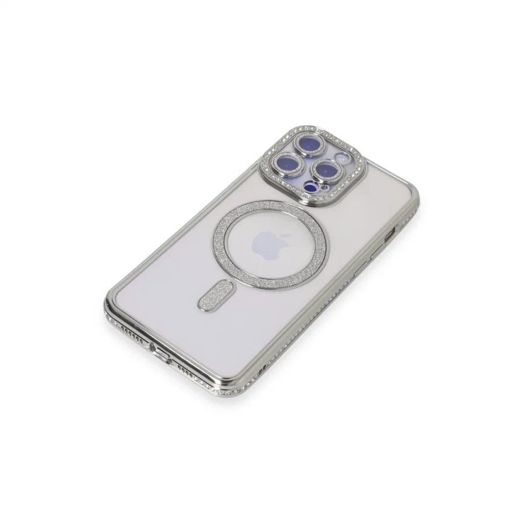 İphone 15 Pro Kılıf Joke Simli Magneticsafe Kılıf - Gümüş