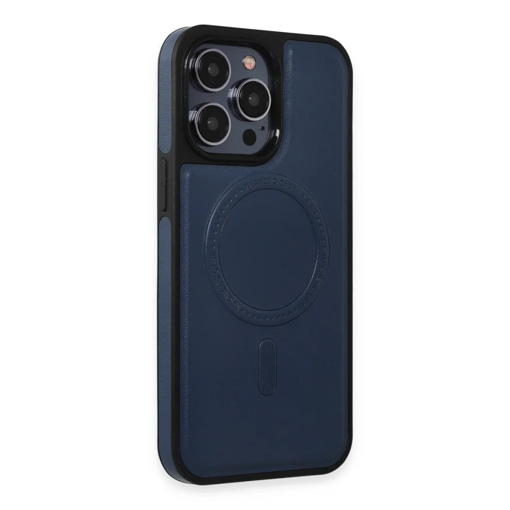 İphone 15 Pro Kılıf Ozzi Magsafe Deri Kapak - Lacivert