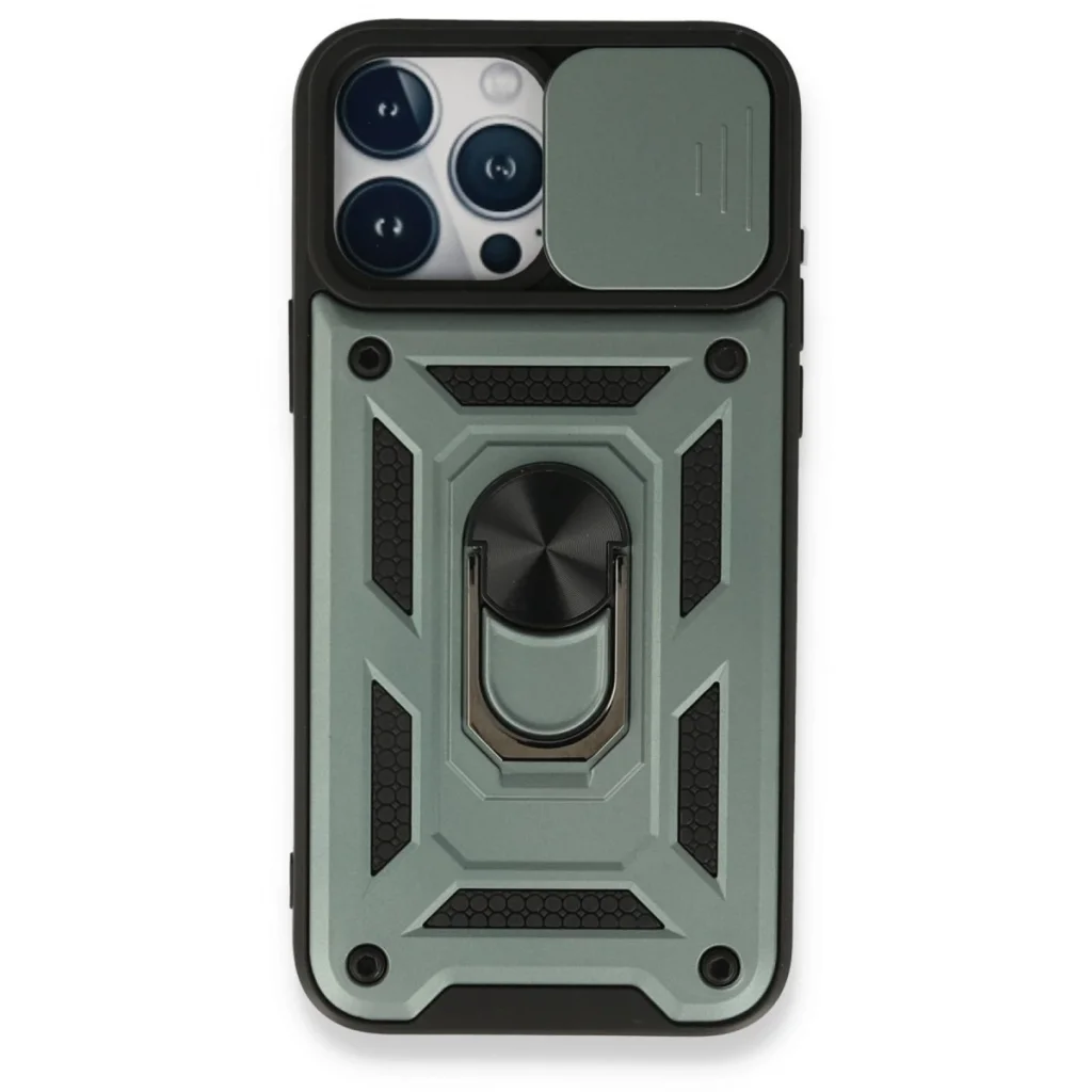 İphone 15 Pro Kılıf Pars Lens Yüzüklü Silikon - Yeşil