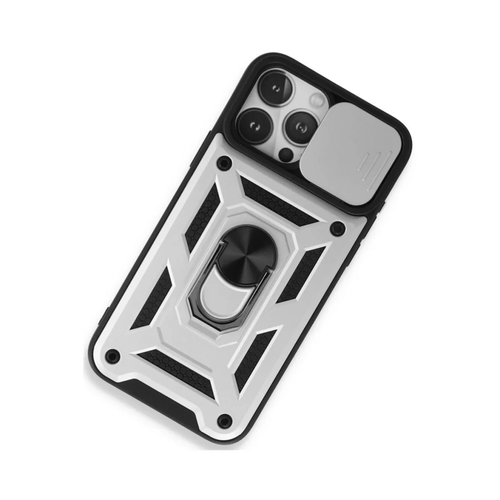 İphone 15 Pro Max Kılıf Pars Lens Yüzüklü Silikon - Gümüş