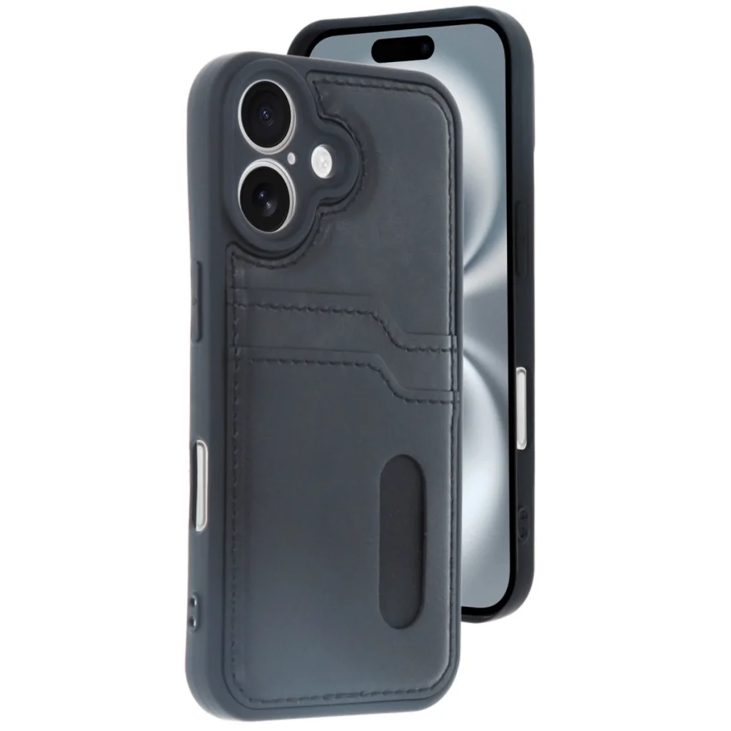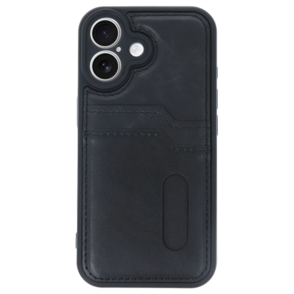 İphone 16 Kılıf Sara Kartvizitli Deri Kılıf - Siyah