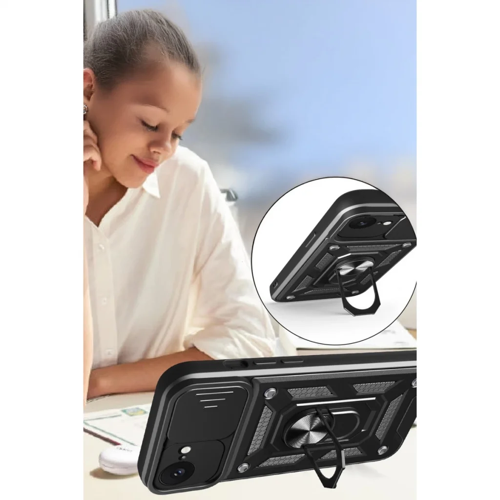 İphone 16e Kılıf Pars Lens Yüzüklü Silikon - Siyah