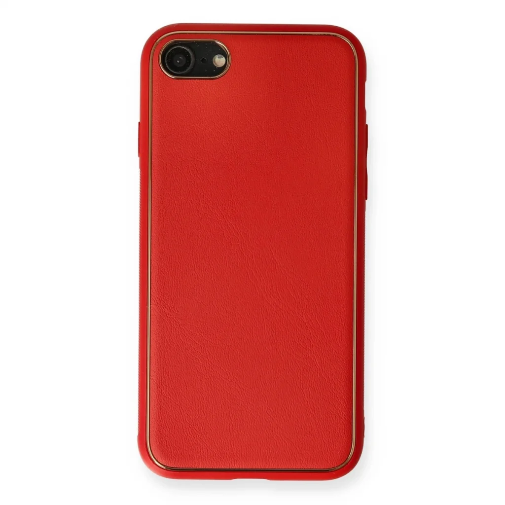 BUĞZ İphone 7 Kılıf Coco Deri Silikon Kapak - Kırmızı