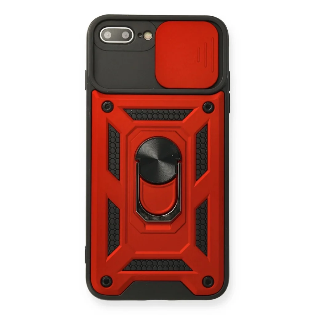 İphone 7 Plus Kılıf Pars Lens Yüzüklü Silikon - Kırmızı