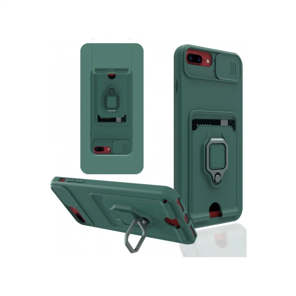 İphone 7 Plus Kılıf Zuma Kartvizitli Yüzüklü Silikon - Yeşil