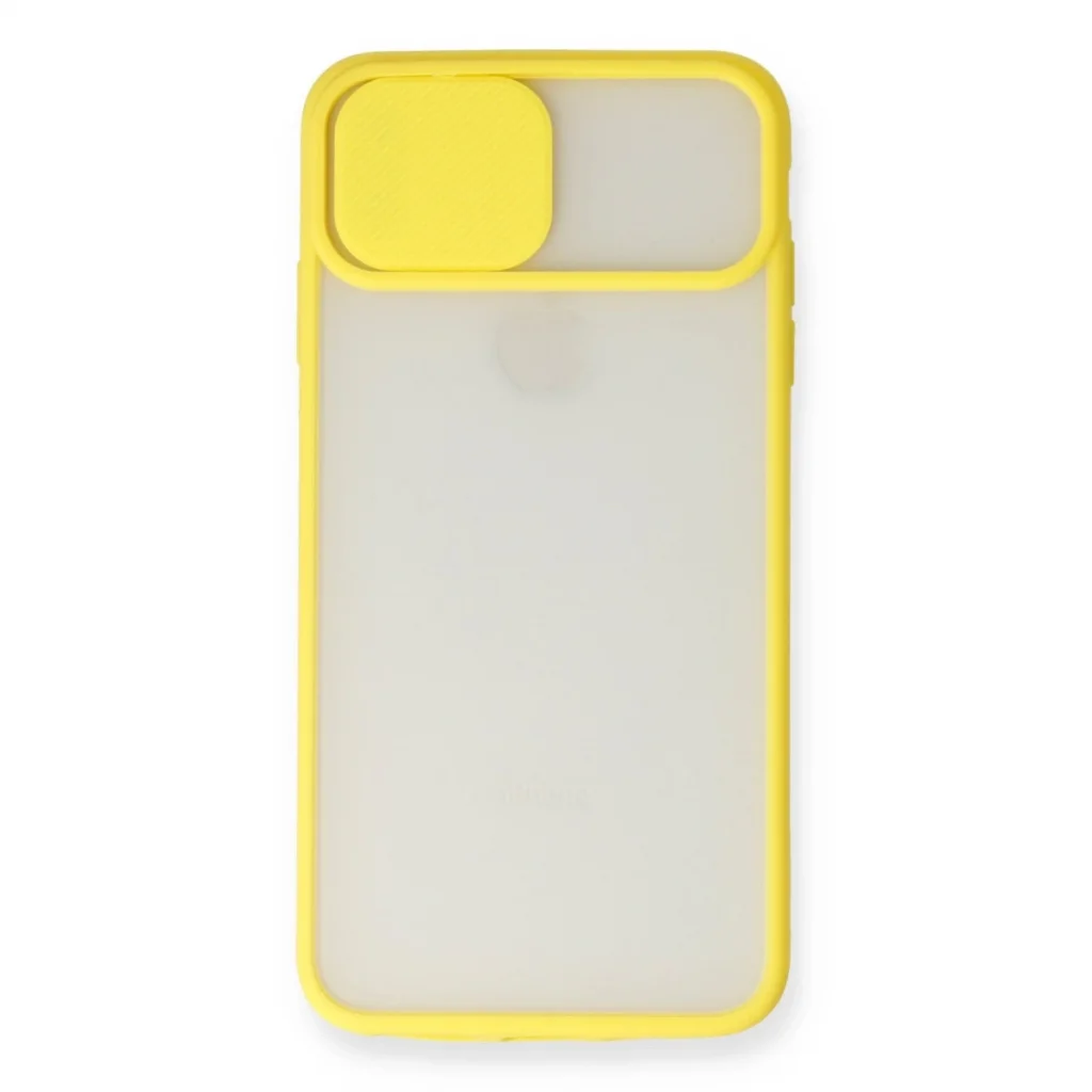 İphone X Kılıf Palm Buzlu Kamera Sürgülü Silikon - Sarı