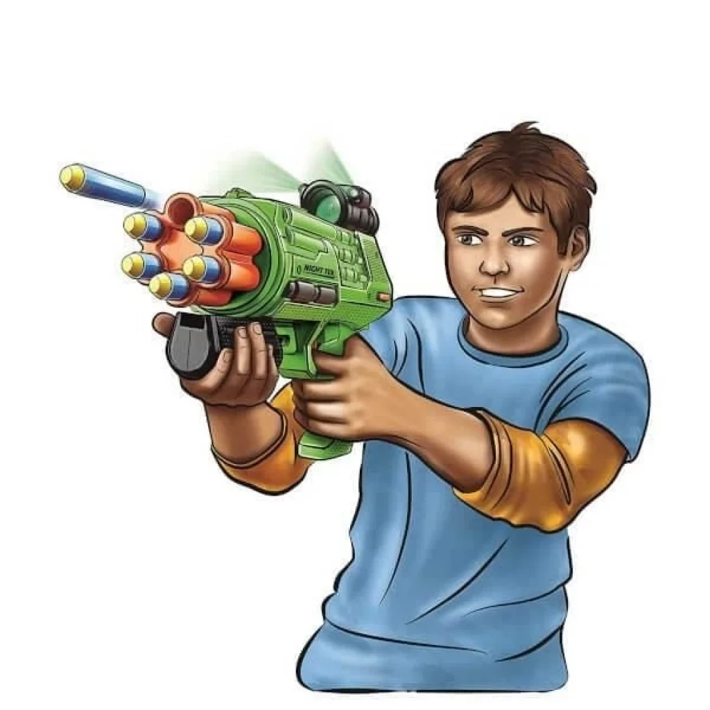 Yumuşak sünger dartlar ile çocuklar güvenli bir şekilde oyunlar oynayabilecek. Bu özel tasarıma sahip dart atan silah ile macera sevenler artık kendilerine çok daha güvenerek kapışmalara katılacak!