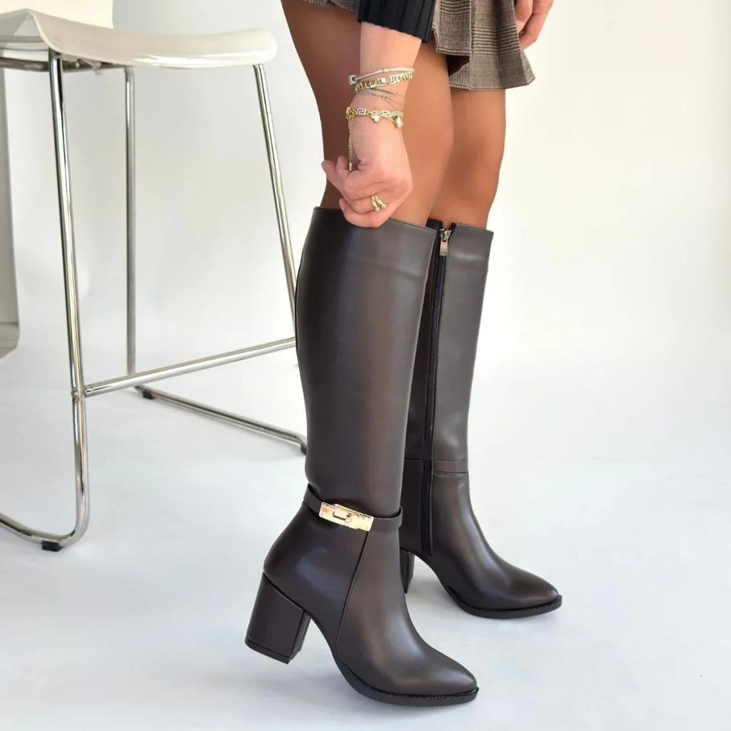 Detay: Topuklu Diz Altı Yandan Fermuarlı Çizme