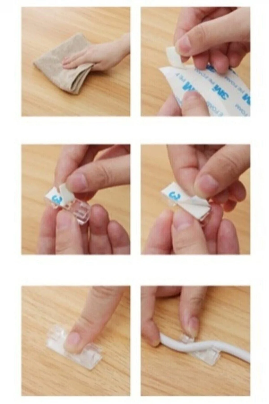 BUĞZ Kablo Sabitleyici Klipsler 20 Adet Kablo Düzenleyici Duvar Fayans Cam Kablo Tutucu Yapışkanlı Klips