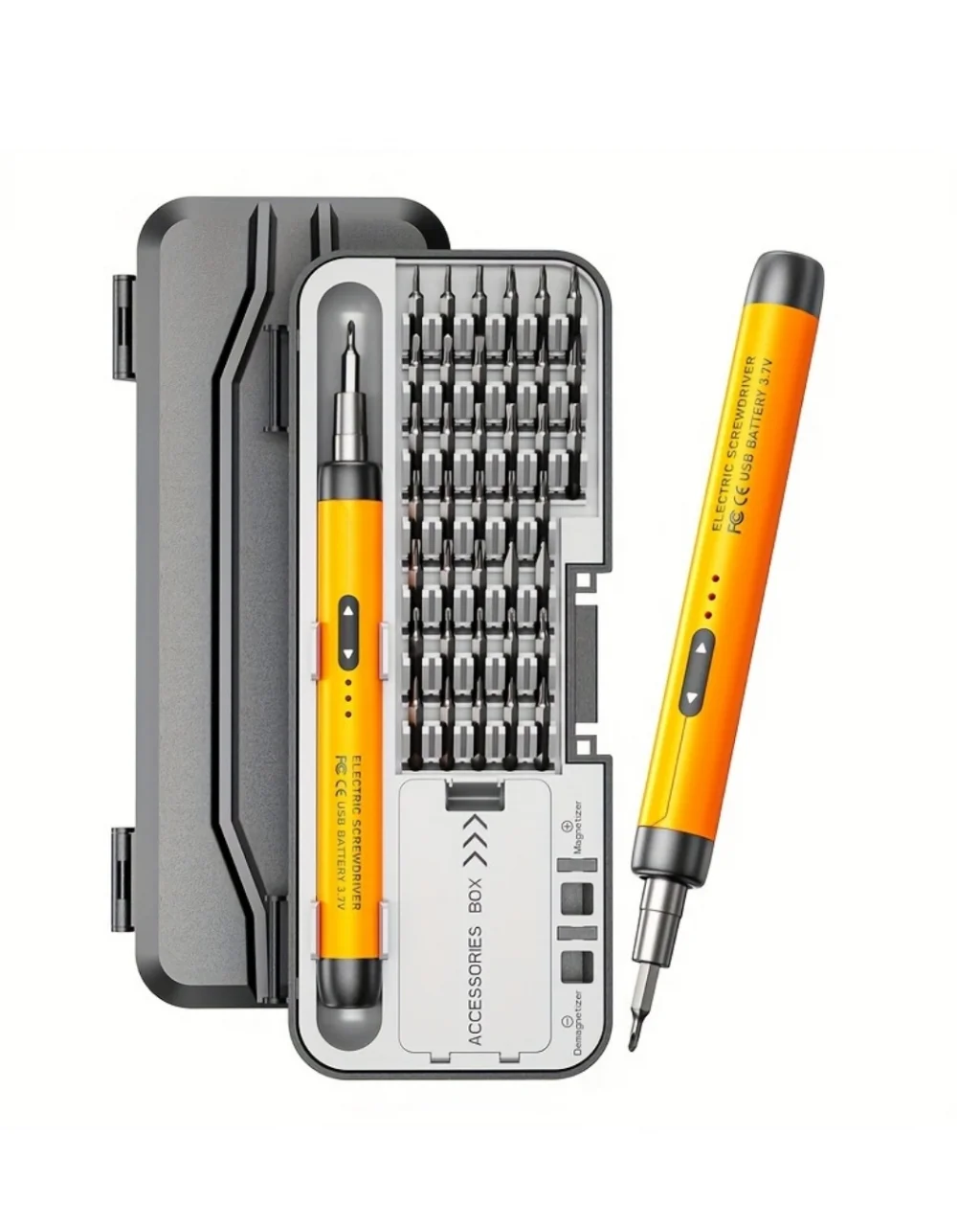 Elektronik tamir işlemlerinde hassasiyet ve kontrol en önemli faktörlerdir. Bu şarjlı elektrikli tornavida seti, tam da bu ihtiyaçlar için geliştirilmiştir. 3.7V Li pil sistemi ve 600mAh kapasitesi ile güçlü bir performans sunarken, Type-C şarj arayüzü sayesinde hızlı şarj imkanı sağlar. Kablosuz tasarımı, çalışma alanında özgürlük sunar.1100 rpm dönüş hızı, küçük ve hassas vidalarda maksimum verim sağlar. 3.0–3.5 kgf.cm tork gücü, elektronik cihazlara zarar vermeden vidalama işlemi yapmanıza yardımcı olur. İleri ve geri dönüş fonksiyonu sayesinde vidalar pratik şekilde sökülüp takılabilir.Alüminyum alaşımlı ergonomik sap tasarımı, elde kayma yapmaz ve uzun süreli kullanımlarda konfor sağlar. 38 adet CRV tornavida ucu, farklı cihazlara uyumlu geniş seçenek sunar. Set içerisindeki 6 adet sökme penası, özellikle telefon ekranı ve kapak sökme işlemlerinde büyük avantaj sağlar.Manyetik uç sistemi sayesinde vidalar sabit tutulur. Mıknatıslanma ve manyetiklik giderme parçaları ise vida kontrolünü optimize eder. Telefon, laptop, kamera, oyun konsolu ve diğer hassas dijital cihazlar için ideal bir tamir setidir.