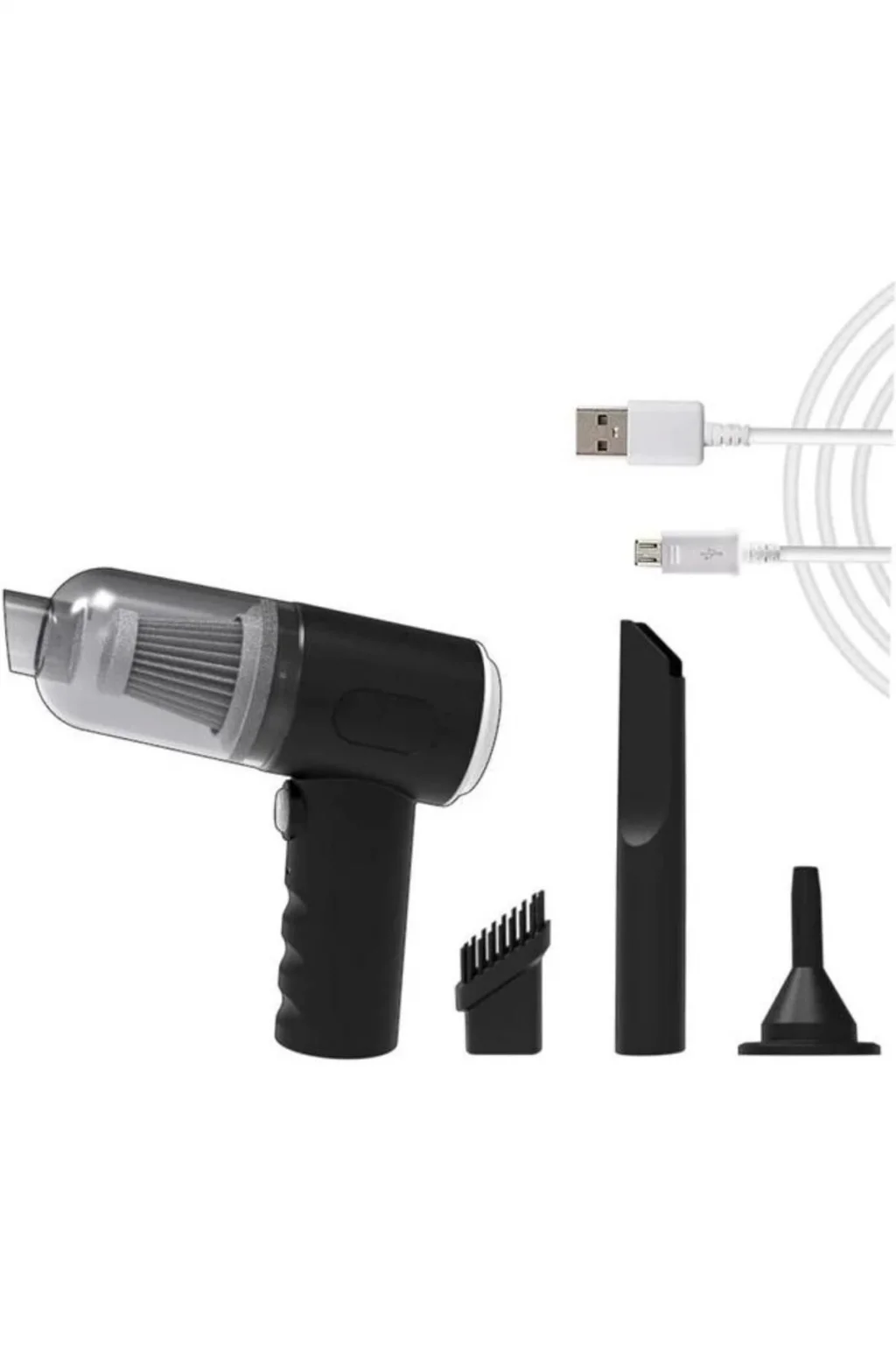 USB şarj kablosu, elektrikli süpürgeyi USB bağlantı noktası olan her yerde şarj etmeyi kolaylaştırır.