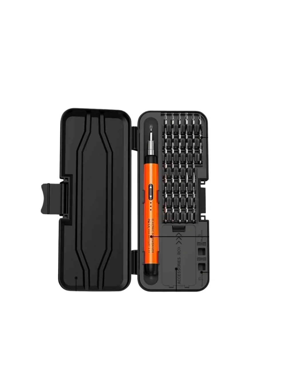Kablosuz şarjlı elektrikli tornavida seti, hassas elektronik tamir işlemleri için özel olarak tasarlanmış profesyonel bir çözümdür. Kompakt ve ergonomik yapısı sayesinde hem teknik servis uzmanları hem de bireysel kullanıcılar için ideal bir kullanım sunar. Alüminyum alaşımlı sap tasarımı hem dayanıklılık hem de hafiflik sağlar. Uzun süreli çalışmalarda el yorgunluğunu minimum seviyeye indirir.3.7V DC gerilimle çalışan Li pil sistemi, 600mAh batarya kapasitesi sayesinde güçlü ve stabil performans sunar. Type-C şarj arayüzü ile hızlı ve pratik şekilde şarj edilebilir. İleri ve geri dönüş özelliği sayesinde vidalama ve sökme işlemleri zahmetsiz şekilde yapılır. 1100 devir/dak serbest hız değeri, küçük ve hassas vidalarda maksimum verimlilik sağlar.3.0-3.5 kgf.cm elektrik tork gücü, elektronik cihazların içindeki mikro vidalar için ideal seviyededir. CRV tornavida uçları dayanıklılığı ve uzun ömürlü kullanımı garanti eder. Set içerisinde 38 farklı tornavida ucu bulunur. Ayrıca mıknatıslanma ve manyetiklik giderme parçaları sayesinde vidalar üzerinde maksimum kontrol sağlanır.Cep telefonları, dizüstü bilgisayarlar, kameralar, saatler, oyun konsolları (PS5, Xbox, Switch) ve diğer hassas dijital ürünlerin onarımında güvenle kullanılabilir. Profesyonel bir teknik servis deneyimini ev ortamına taşıyan kapsamlı bir tamir setidir.