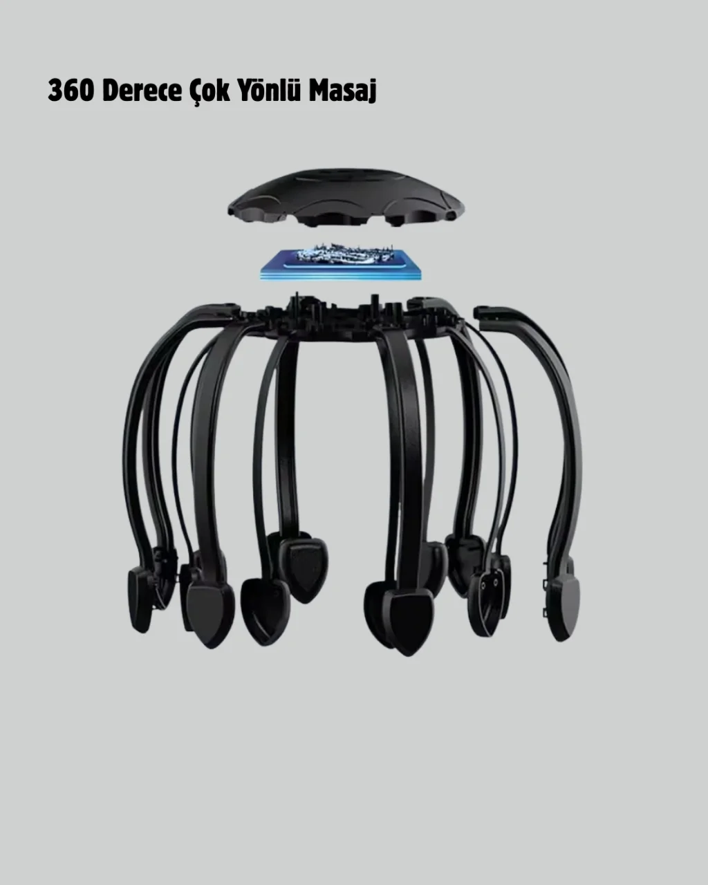 Pratik, hafif ve taşınabilir yapısıyla günlük kullanım için ideal olan bu kafa masaj cihazı, hem ev ortamında hem ofiste hem de yolculuklarda rahatlama sağlar. 8 bağımsız masaj kolu, saç derisine eşit ve düzenli baskı uygulayarak baş bölgesindeki tüm gerginliği ortadan kaldırmaya yardımcı olur.360 derece masaj yapısı, tüm kafa çevresini sararak çok yönlü bir masaj etkisi sunar. Cihazın üç farklı modu sayesinde ister hafif gevşetici, ister orta ayarda rahatlatıcı, isterseniz daha güçlü bir titreşimle derinlemesine masaj yapabilirsiniz.USB şarj edilebilir batarya sistemi, uzun ömürlü kullanım sağlar ve cihazı kablosuz şekilde çalıştırmanıza olanak tanır. Eller serbest kullanım özelliği, kitap okurken, bilgisayar başında otururken veya dinlenirken masajın kesintisiz devam etmesini sağlar.Hafif yapısı ile çantalara kolayca sığar. Bu nedenle yoğun tempo yaşayanlar için mükemmel bir kolaylık sunar. Masaj başlıkları saçları çekmeden yumuşak dokunuşla hareket ederek hem saç derisini hem de baş kaslarını rahatlatır.Düzenli kullanımda baş ağrılarını hafifletir, kan dolaşımını destekler, zihni rahatlatır ve uyku kalitesini artırır. Günün stresini atmak, daha hafif hissetmek ve empati güçlendirmek isteyen kullanıcılar için ideal bir masaj cihazıdır.Ürün Markası: BUĞZ