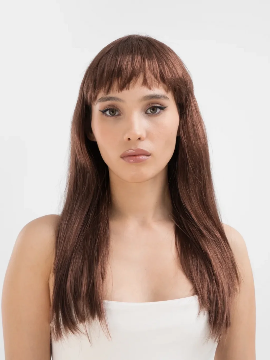 BUĞZ Kahve Renk Uzun Düz Parti Peruğu - Uzun Kahverengi Peruk