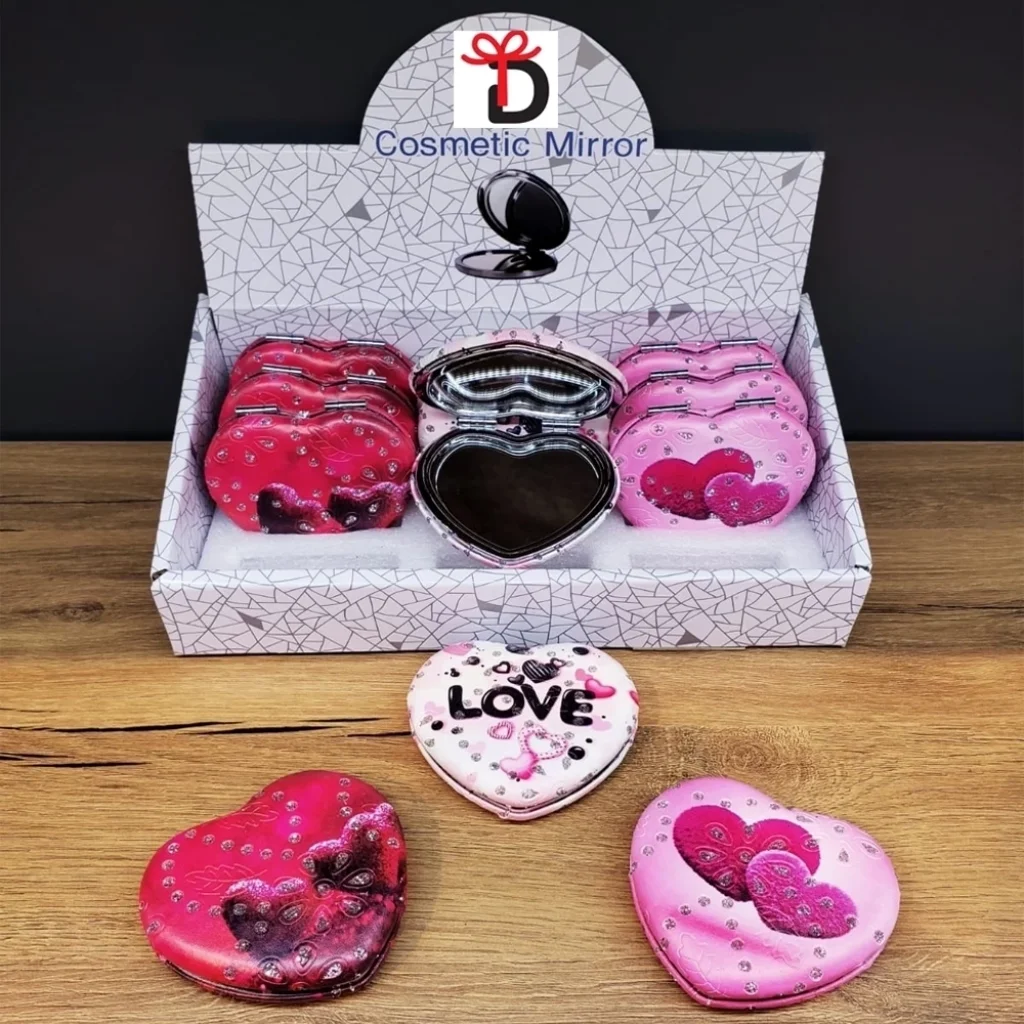 Mini cep aynası kalp tasarımı ve üzerindeki aşkı temsil eden motifler sayesinde sevgililer gününde sevgilinize yada eşinize şık bir hediye.