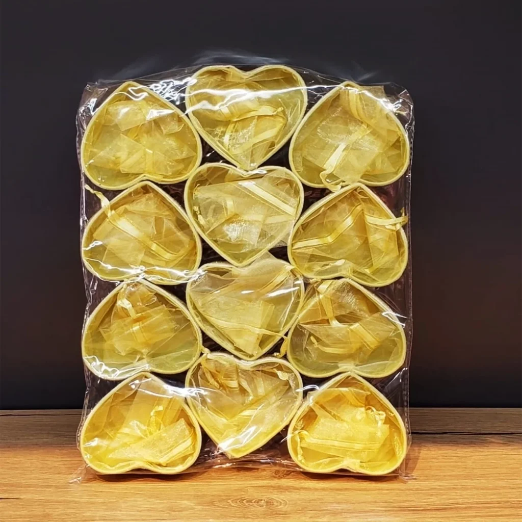 Kalp tasarımı ve gold rengi tül kese rengi ve tasarımı ile oldukça dikkat çekmektedir.