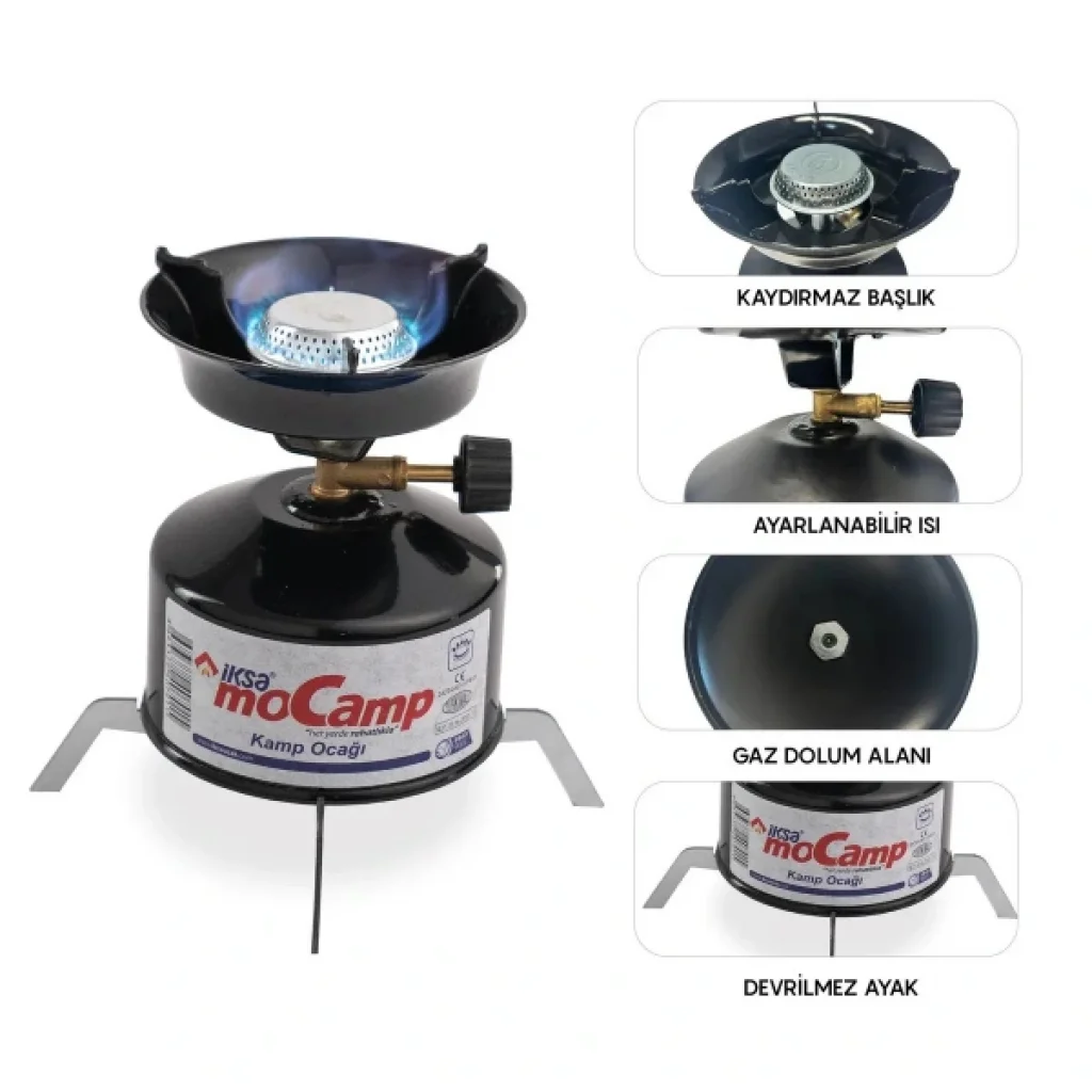KAMP OCAĞI SETİÜrün ÖzellikleriKamp ocağı seti, taşınabilir ve kompakt yapısıyla outdoor aktivitelerinizde mükemmel bir yardımcıdır. 12 cm çapındaki pişirme alanı, tencere ve tava kullanımı için uygundur. Toplam ağırlığı yaklaşık 400 gram olan bu set, hafif ve pratik bir kullanım sunar. Universal çakmak gazı tüpü ile çalışır ve setin içinde yer alır. Ayarlanabilir alev gücü sayesinde düşükten yükseğe kontrollü pişirme yapabilirsiniz. Dayanıklı metal gövde ve plastik gaz vanası ile uzun ömürlüdür. Piknik, kamp, doğa yürüyüşleri ve acil durumlar için idealdir. Yanma süresi, yakıt kapasitesine bağlı olarak uzun süreli kullanım sağlar.Paket İçeriği1 Adet Kamp Ocağı1 Adet Universal Çakmak Gazı Tüpü1 Adet Metal Üç Ayaklı Denge Aparatı