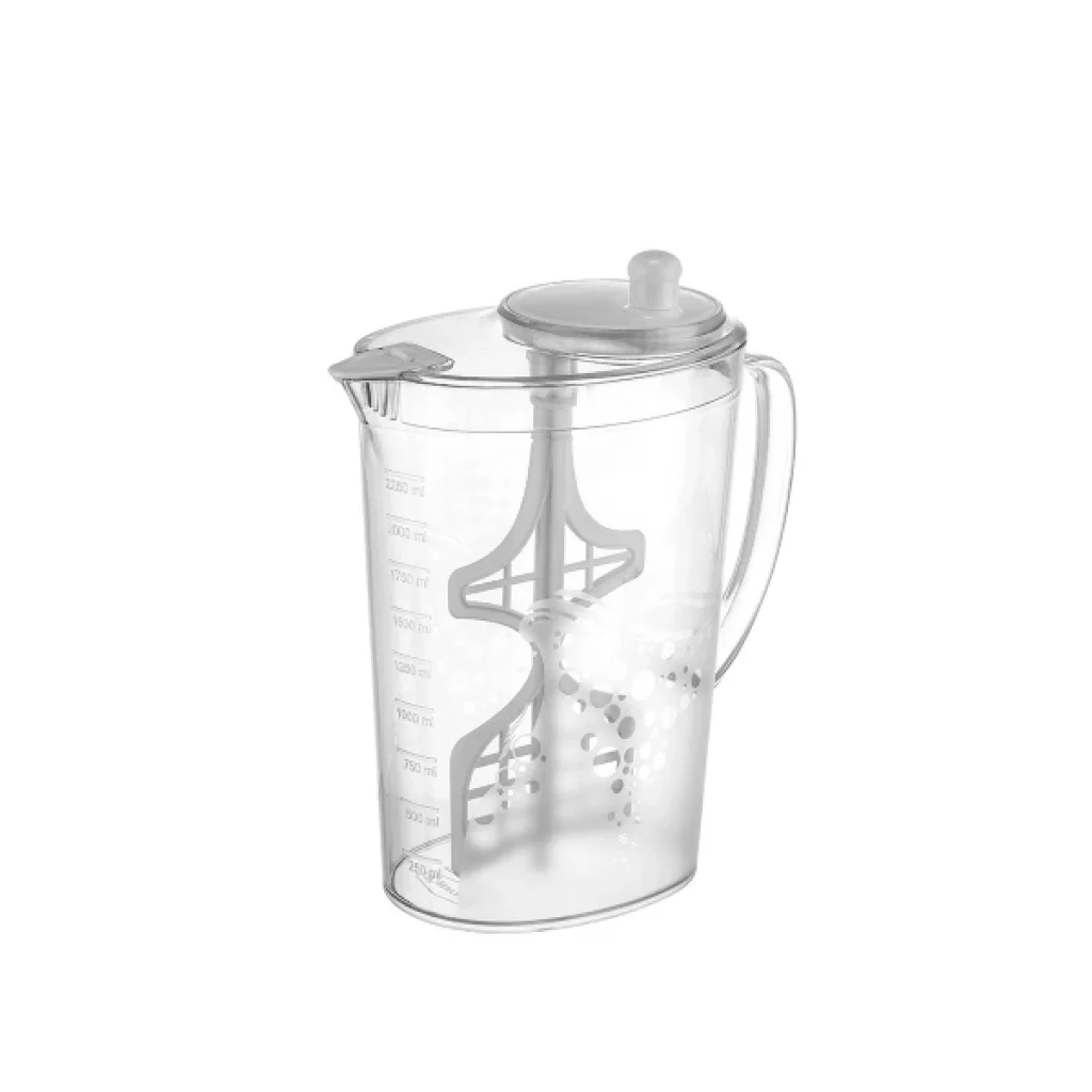 KARIŞTIRICILI SÜRAHİ Ürün ÖzellikleriKarıştırıcılı Sürahi, içecek hazırlama sürecini tek bir kapta birleştiren yenilikçi ve fonksiyonel bir mutfak gerecidir. Ürünün en dikkat çekici özelliği olan entegre karıştırma atı, kapağı açmadan ayran, limonata veya toz içecekleri saniyeler içinde homojen hale getirmenizi sağlar. Gövde üzerinde yer alan mililitre bazlı ölçü çizgileri, tariflerinizi hazırlarken tam kıvamında sonuçlar almanıza yardımcı olur. 2,25 litrelik geniş hacmi ve kristal berraklığındaki şeffaf tasarımı ile hem hazırlık hem de servis aşamasında büyük kolaylık sunar. Ergonomik tutma sapı ve damlatma yapmayan ağız yapısı, güvenli ve temiz bir kullanım deneyimi sağlar. Yüksek kaliteli, sağlığa uygun plastik materyalden üretilen bu karıştırıcılı sürahi, dayanıklı yapısı ve şık formuyla modern mutfakların en pratik yardımcılarından biri olmaya adaydır.Ürün Teknik ÖzellikleriÖzellikAçıklamaÜrün AdıKarıştırıcılı SürahiHacim2250 ml (2,25 Litre)RenkŞeffaf Gövde - Beyaz Kapak ve KarıştırıcıMalzemeYüksek Kaliteli Plastik (BPA İçermez)FonksiyonEntegre Karıştırma Mekanizması ve Ölçü GöstergesiTasarımErgonomik Kulp - Modern Oval FormKullanım Alanıİçecek Hazırlama, Karıştırma ve ServisPaket İçeriği1 Adet Karıştırıcılı Sürahi