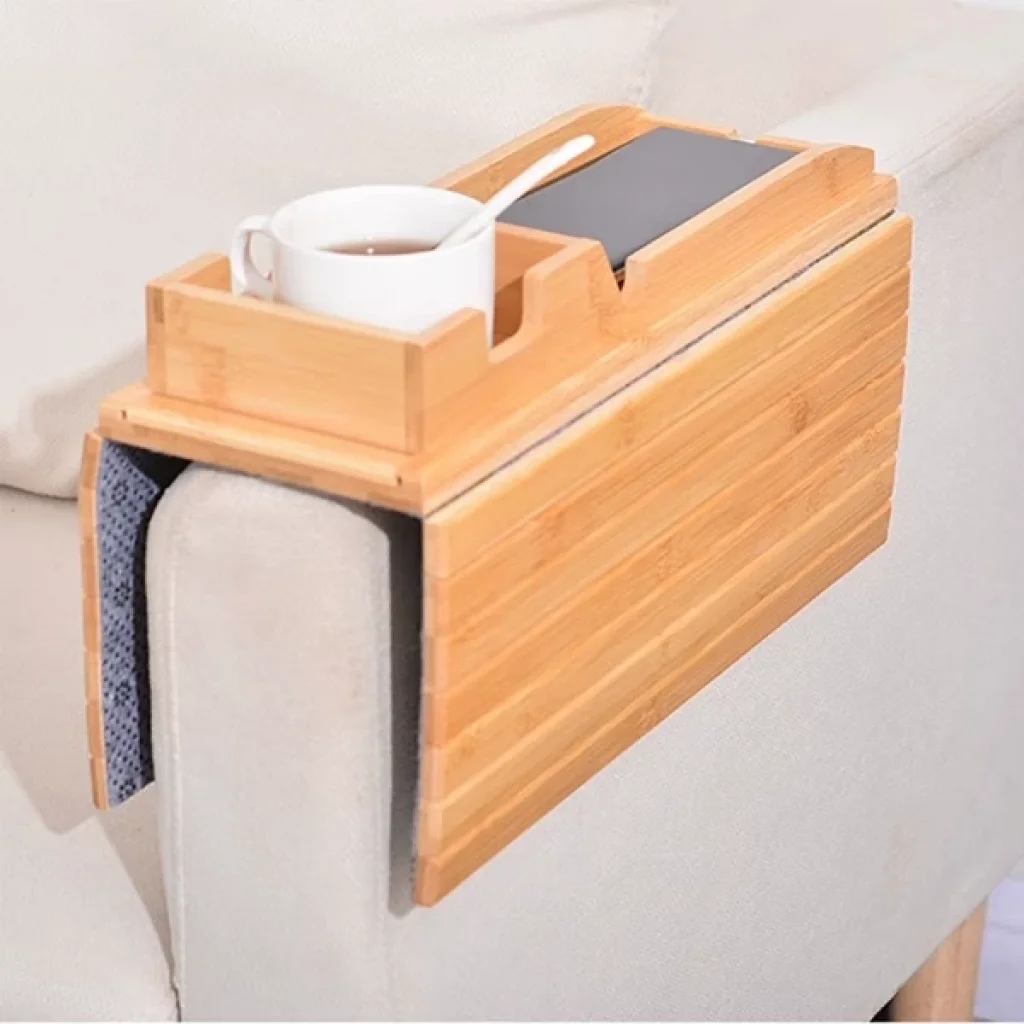 KATLANABİLİR AHŞAP KANEPE TEPSİSİÜrün ÖzellikleriKatlanabilir ahşap kanepe tepsisi, bambu görünümlü dayanıklı ahşap yapısıyla estetik ve işlevselliği bir arada sunar. Kanepe kolçaklarına kolayca yerleştirilebilen bu pratik ürün, alt kısmında bulunan kaydırmaz yüzeyi sayesinde güvenli kullanım imkânı sağlar. Üzerine telefon, kumanda, kitap, çay veya kahve kupası yerleştirilebilir ve koltuk kenarında düzenli bir alan yaratır. Katlanabilir yapısı sayesinde kolayca saklanabilir ve taşınabilir. Doğal görünümü ile ev dekorasyonunuza uyum sağlar. Hem pratik bir yardımcı hem de şık bir tamamlayıcıdır.41,5 x 33,5 cm ölçülerinde olup 1 cm kalınlığa sahiptir.Paket İçeriği1 adet Katlanabilir Ahşap Kanepe Tepsisi