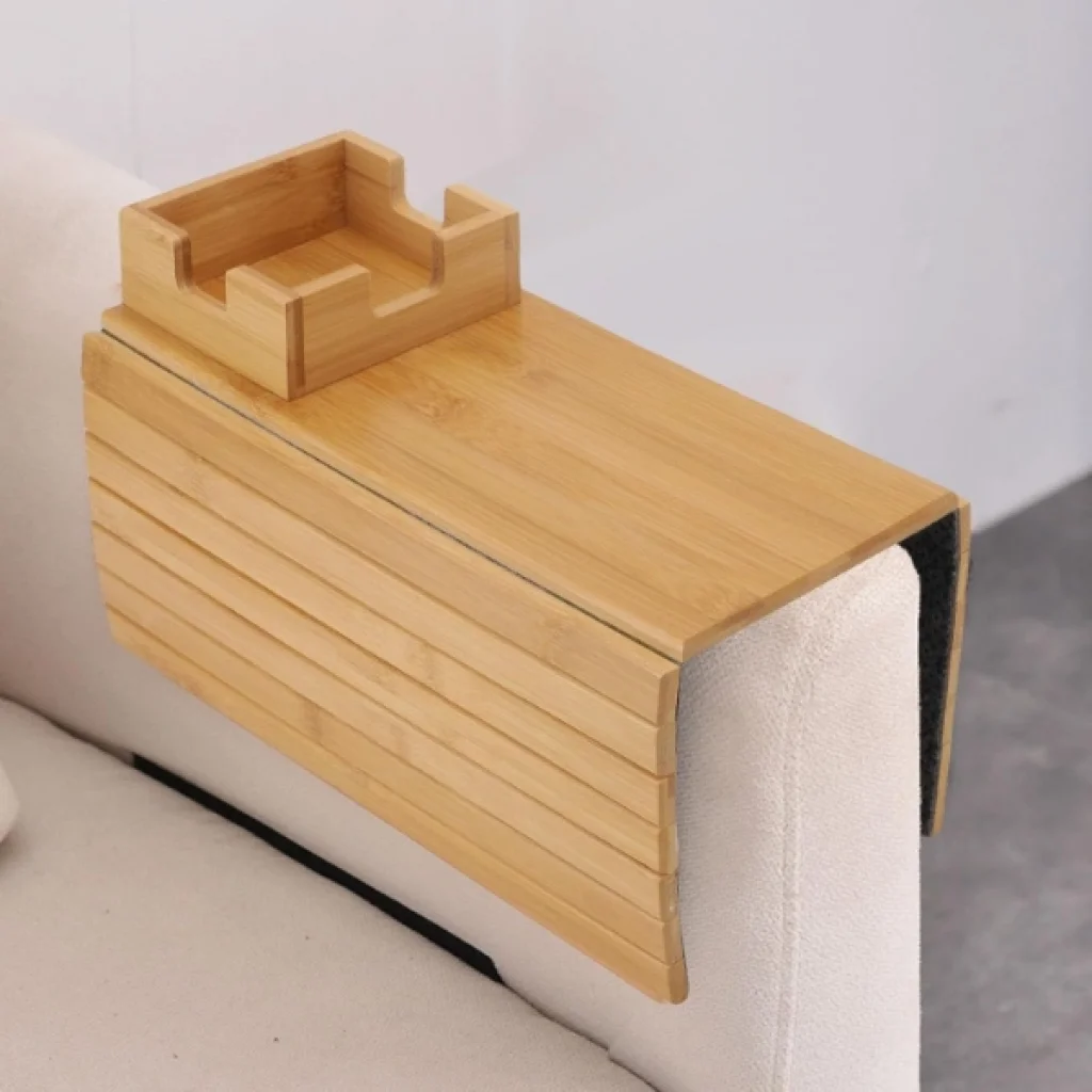 KATLANABİLİR AHŞAP KOLTUK YANI KANEPE TEPSİSİÜrün ÖzellikleriKatlanabilir ahşap koltuk yanı kanepe tepsisi, kol dayama kısmını pratik bir servis alanına dönüştürmek için tasarlanmış kullanışlı bir ev aksesuarıdır. Esnek ve katlanabilir 32x33 cm boyutundaki yapısı sayesinde farklı genişlikteki koltuk ve kanepelere kolayca uyum sağlar. Ahşap yüzeyi içecek, atıştırmalık, kumanda veya telefon gibi eşyaları sabit bir zemin üzerinde kullanmanıza imkân tanır. Üst kısmında yer alan özel bölmeli alan sayesinde kupa veya bardak daha dengeli şekilde konumlandırılabilir. Koltuk yanı tepsi tasarımı ile sehpa ihtiyacını azaltır ve dar alanlarda pratik çözüm sunar. Katlanabilir kanepe tepsisi kullanılmadığında düz şekilde katlanarak kolayca saklanabilir. Doğal ahşap görünümü ile dekorasyona uyum sağlar ve hem oturma odasında hem de çalışma alanlarında işlevsel kullanım sunar. Ahşap koltuk kol dayama tepsisi, evde konforlu ve düzenli bir kullanım deneyimi sağlar.Ürün Teknik Özellikleri Özellik Açıklama Ürün Adı Katlanabilir Ahşap Koltuk Yanı Kanepe Tepsisi Malzeme Ahşap Renk Doğal ahşap Kullanım Alanı Koltuk ve kanepe kol dayama alanı Paket İçeriği1 adet katlanabilir ahşap koltuk yanı kanepe tepsisi