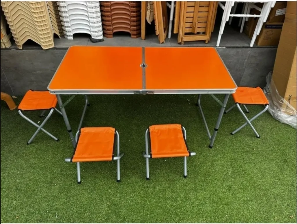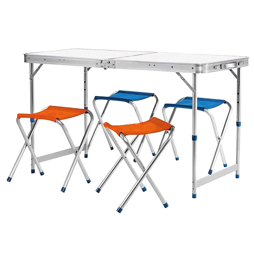 Alüminyum Katlanabilir Kamp Masa Seti + 4 Tabure katlanabilir kamp masası seti ve 4 taburesi ile kapalı ve açık birçok alanda rahatınız ve konforunuzdan ödün vermeyeceksiniz. Farklı pek çok alanda kullanıma uygun olan ergonomik kamp masası ve tabureleri plajda, bahçede, balkonda, balık avında, kamp alanlarında ya da piknik yerlerinde keyifle ve güvenle kullanabilirsiniz. Ergonomik bir tasarıma sahip olan kamp masası ve tubureler kolayca kurulup kaldırılabilir,