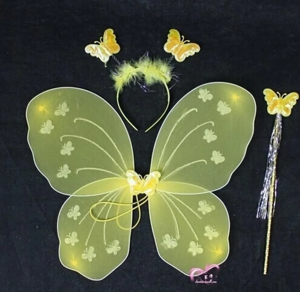 Kelebek Kanat Seti Sarı RenkKelebek Kostüm Seti1 Adet Kanat1 Adet Taç1 Adet AsaÇocuk Uyumludur