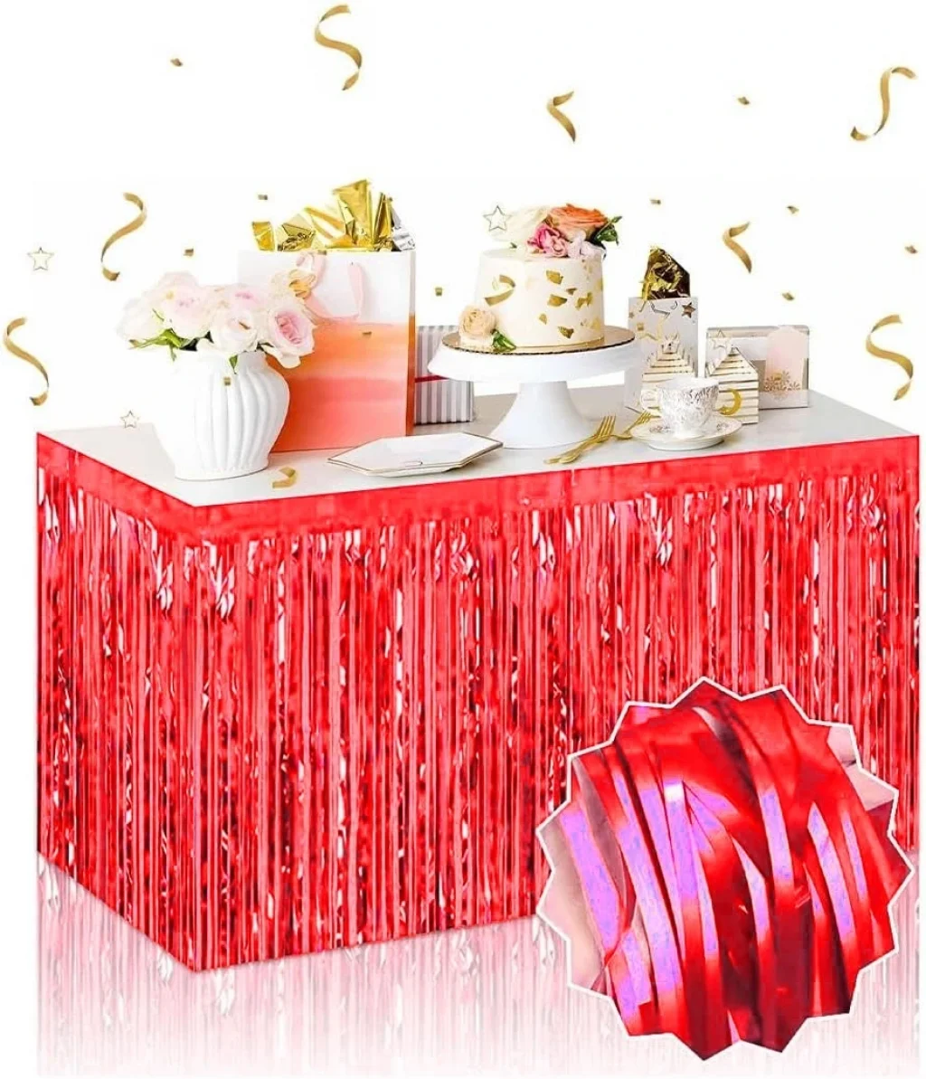 BUĞZ Kendinden Yapışkanlı Kırmızı Metalize Püsküllü Masa Eteği