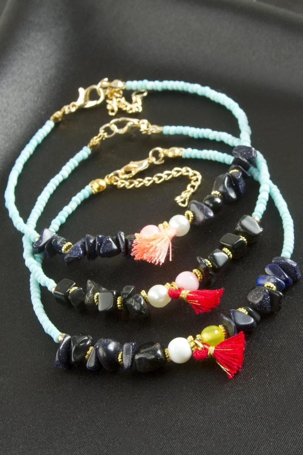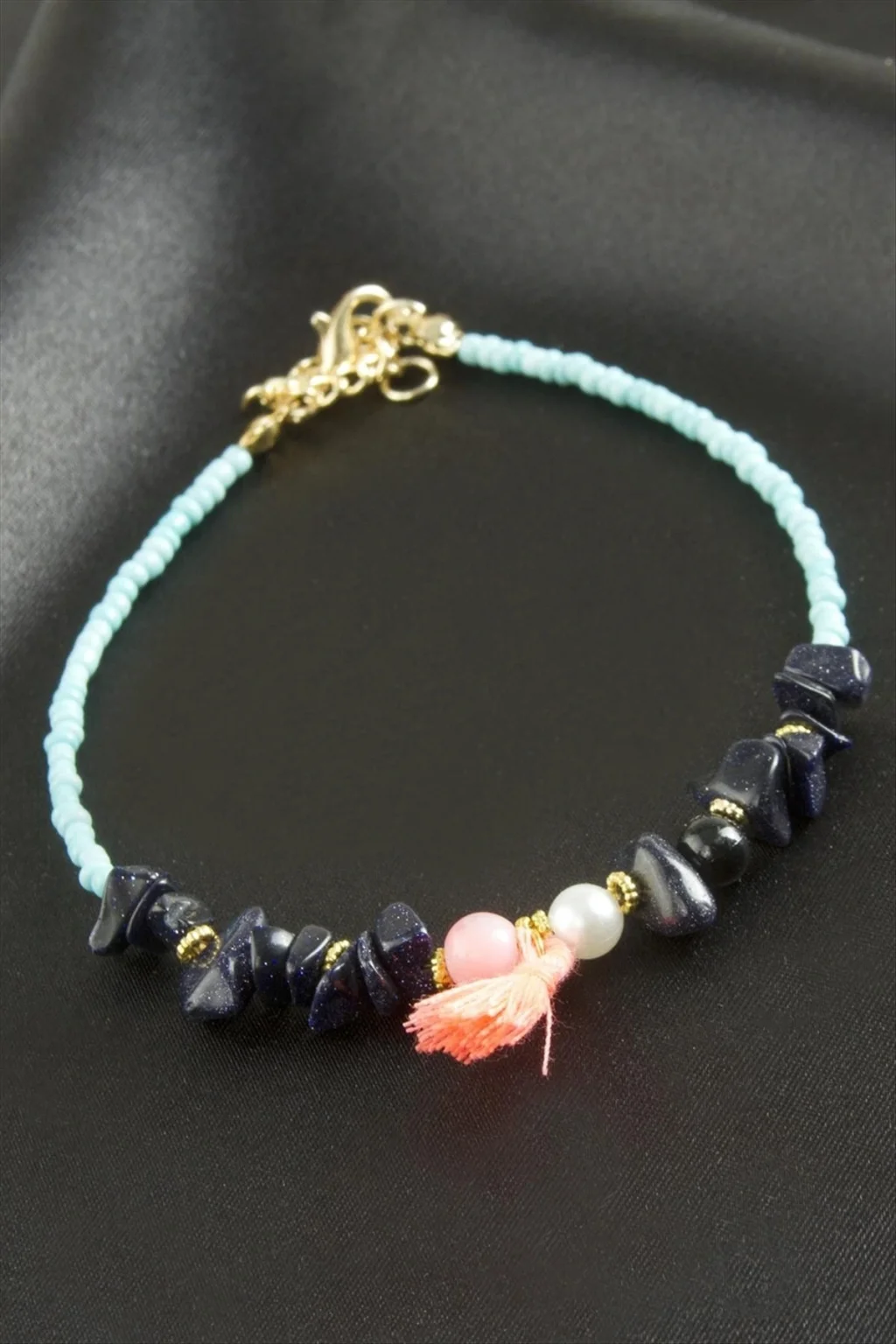 Bileklik; Ürün malzemesi kırık doğaltaş, metal ve miyoki boncuktur. Ürün boyu 22 cmdir. Ürün renkleri asortilidir. Siparişlerinizde karışık olarak gönderilecektir.