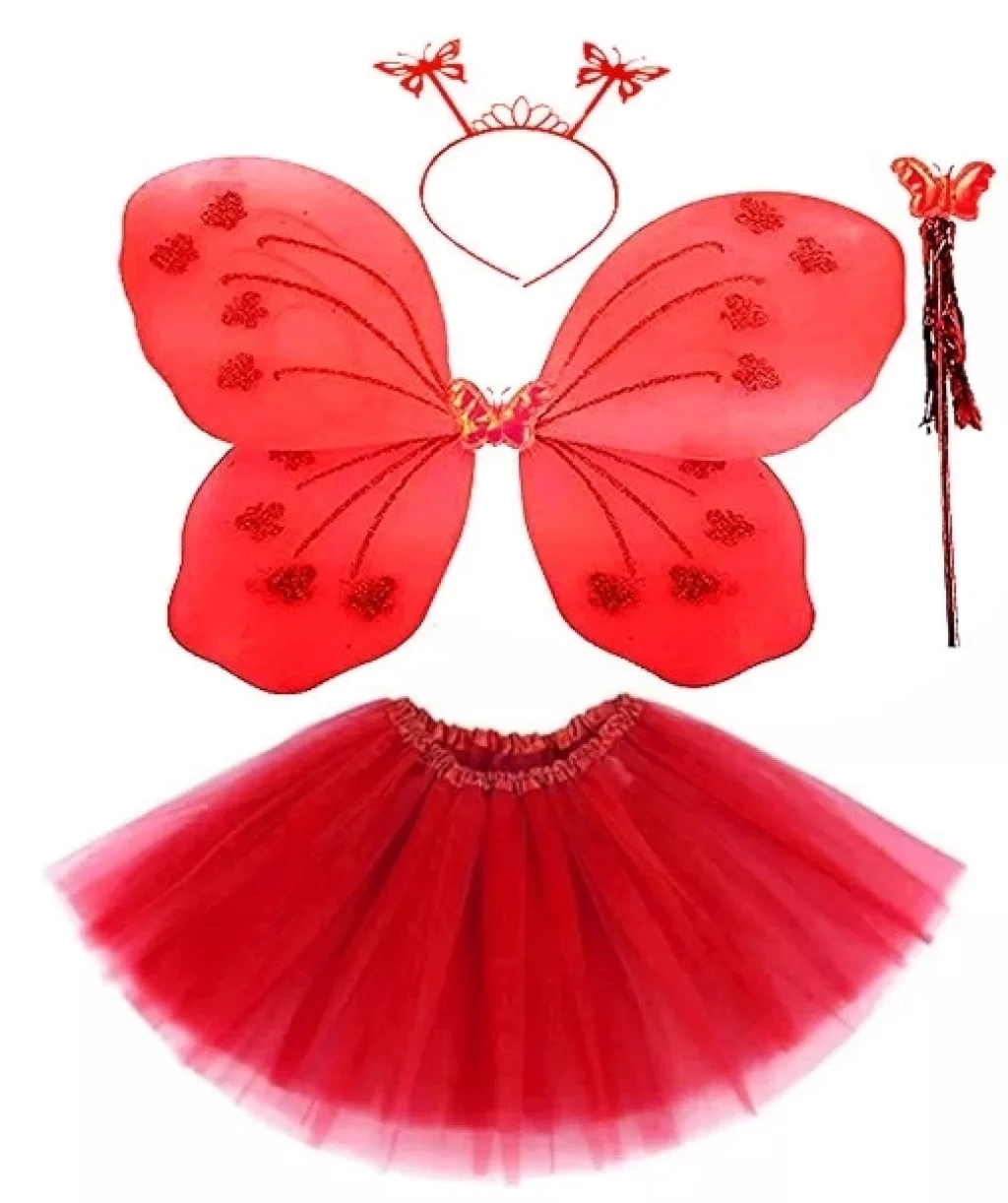 BUĞZ Kırmızı Kelebek Kostümü - Kırmızı Kelebek Kostüm Aksesuar Seti 4 Parça