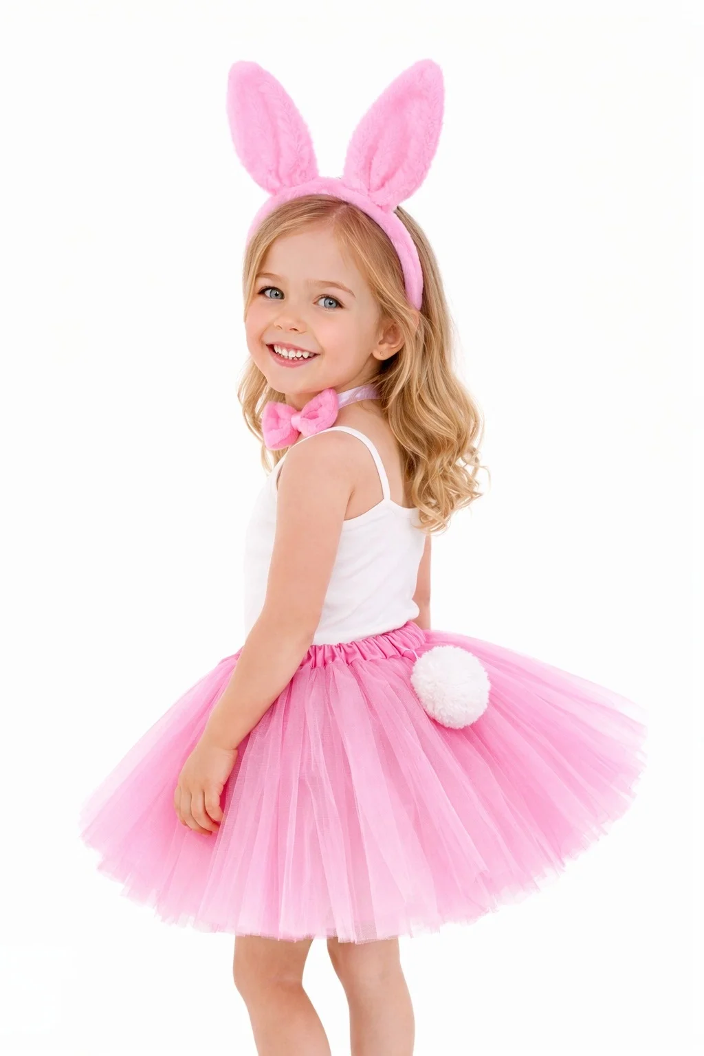 KIZ ÇOCUK PEMBE TAVŞAN KULAKLI KOSTÜM SETİ - TÜTÜ, TAÇ, PAPYON, PONPONÜrün ÖzellikleriKız çocuk pembe tavşan kulaklı kostüm seti, tamamen pembe tasarımıyla sahne gösterileri, dans etkinlikleri, okul organizasyonları ve özel günler için sevimli ve dikkat çekici bir kostüm alternatifi sunar. Tavşan kulaklarının tamamının pembe renkte olması, ürünü klasik tavşan setlerinden ayırarak daha bütünlüklü ve şık bir görünüm kazandırır. Set içerisinde yer alan pembe tütü etek, 35 cm uzunluğu ve hafif kabarık yapısıyla çocukların rahatça hareket etmesine olanak tanır; dans ve bale gibi aktivitelerde estetik bir siluet oluşturur. Tavşan temalı aksesuarlarla tamamlanan bu kostüm, sahnede enerjik ve eğlenceli bir duruş sergiler. Yumuşak dokulu ve hafif malzemeden üretilmiş olması çocuk cildine uygundur, esnek yapısı sayesinde kolayca giyilip çıkarılabilir ve uzun süreli kullanımlarda konfor sağlar. Okul gösterileri, dans ve bale çalışmaları, doğum günü kutlamaları ve temalı etkinliklerde hem estetik hem de pratik bir tercih olarak öne çıkar.Paket İçeriği1 adet Kız Çocuk Pembe Tavşan Kulaklı Kostüm Seti (Tütü Etek 35 cm + Taç + Papyon + Ponpon)