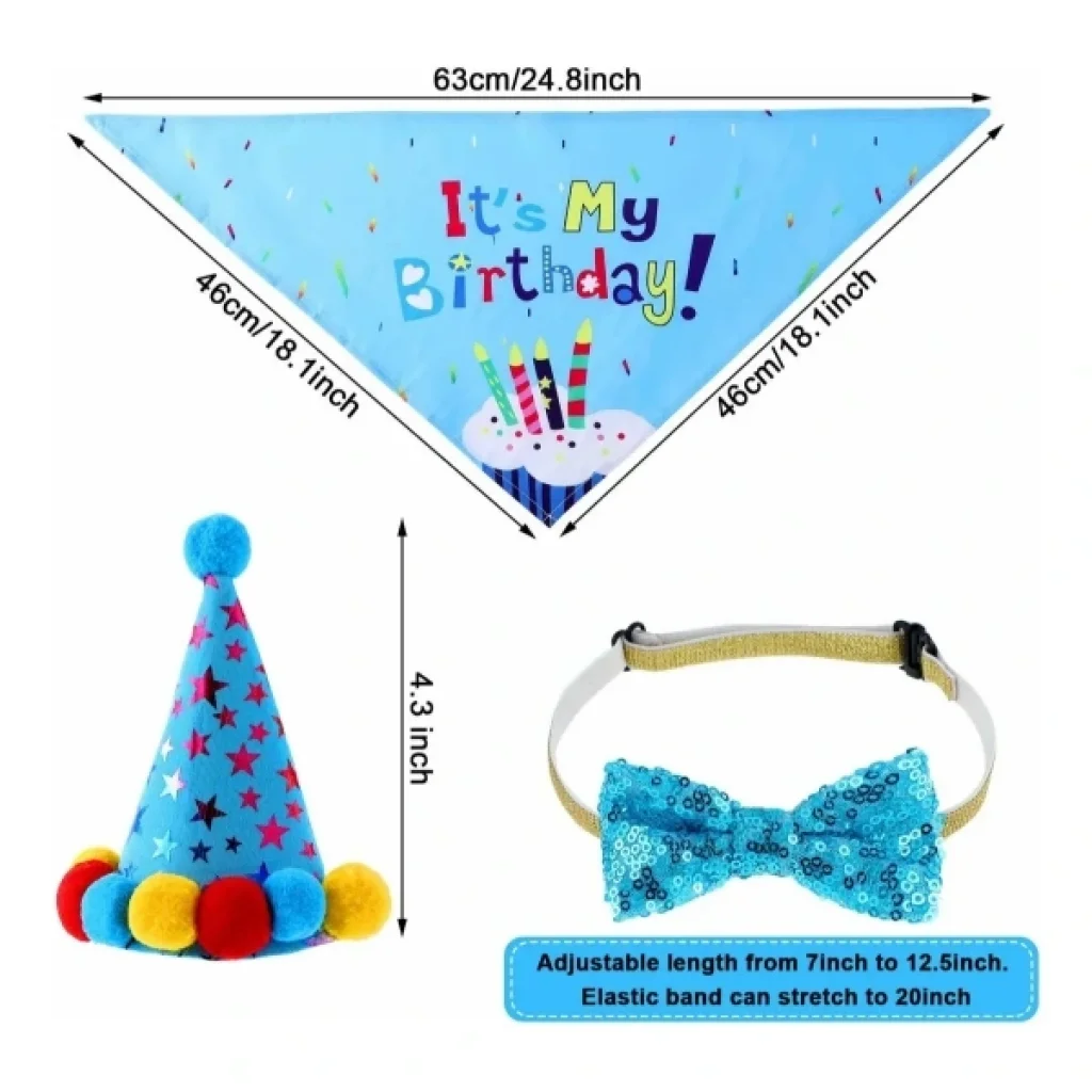 KÖPEKLER İÇİN DOĞUM GÜNÜ PARTİSİ SETİÜrün ÖzellikleriSevimli dostunuzun en özel gününü unutulmaz kılmak için tasarlanan köpekler için doğum günü partisi seti, tam bir kutlama atmosferi yaratır. Set içeriğinde yer alan renkli balonlar, şirin parti şapkaları, fular ve dekoratif banner sayesinde köpeğinizin doğum günü hem eğlenceli hem de fotoğraflık bir anıya dönüşür. Ürün, evcil hayvan dostlarımızın doğum gününü özel kılmak isteyen tüm hayvan severler için idealdir.Set içerisinde bulunan "It's My Birthday" yazılı bandana, köpeğinize şıklık katarken, sevimli parti şapkaları sayesinde kutlamalara neşe katabilirsiniz. Mavi tonlarda hazırlanan balonlar patili ve puantiyeli tasarımlarıyla ortama eğlenceli bir hava katar. Ayrıca "Happy Birthday" yazılı bayraklı banner, mekân dekorasyonunu tamamlayarak kutlamayı daha görkemli hale getirir.Köpeğinizin rahatlığı düşünülerek tasarlanmış olan aksesuarlar, kolayca takılıp çıkarılabilir. Sağlam malzemelerden üretilen parçalar defalarca kullanılabilir. İç ve dış mekânlarda rahatlıkla kullanabileceğiniz bu parti seti ile dostunuza unutulmaz bir doğum günü sürprizi yapabilirsiniz.Paket İçeriği1 adet Köpekler İçin Doğum Günü Partisi Seti