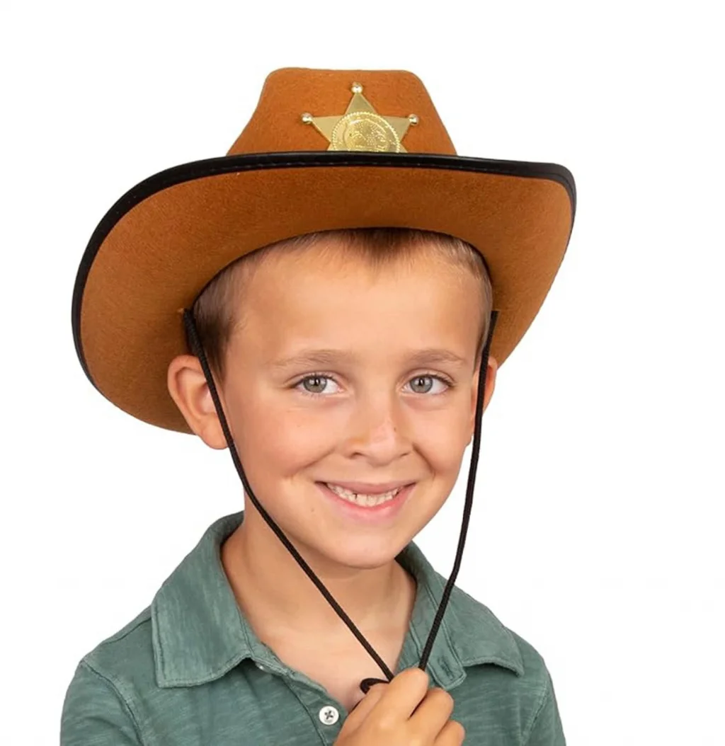 BUĞZ Çocuk Kovboy Şapkası Plastik Üzeri Flok Kaplama Açık Kahverengi