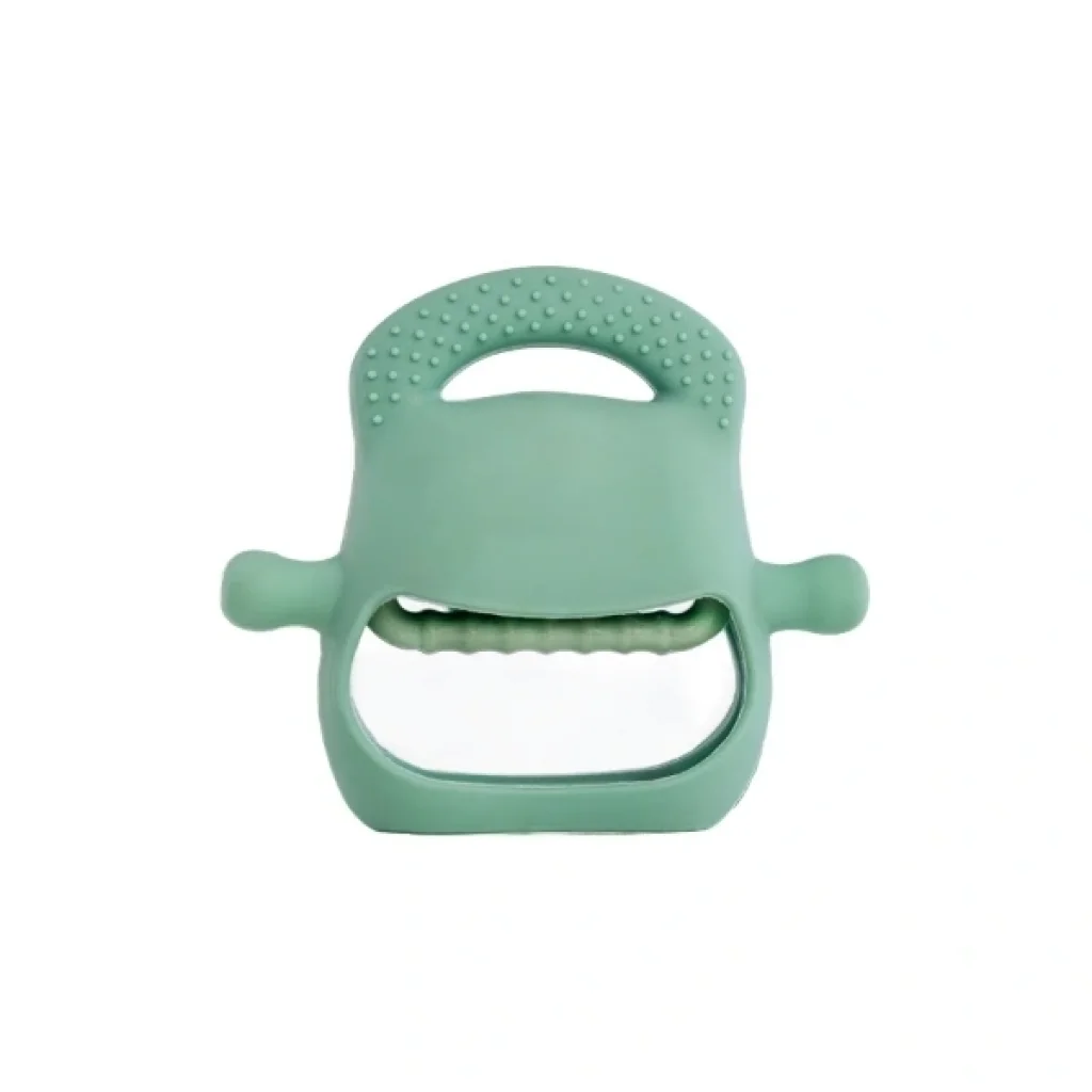 KOYU YEŞİL BEBEK SİLİKON DİŞ KAŞIYICIÜrün ÖzellikleriKoyu yeşil silikon bebek diş kaşıyıcı, diş çıkarma döneminde bebeklere hem rahatlatıcı hem de eğlenceli bir deneyim sunar. Modern tasarımı, farklı dokulara sahip yüzeyleri ve ergonomik tutma alanları sayesinde minik eller için kolay kavranabilir yapıdadır. Hassas diş etlerini nazikçe masaj yak yatıştırır ve bebeklerin sakinleşmesine yardımcı olur.Çift yönlü emzik kolları, bebeklerde doğal emme refleksini desteklerken parmak emme alışkanlığının önüne geçer. Aynı zamanda çene kaslarını çalıştırarak ağız ve çene gelişimine katkı sağlar. Hafif ve esnek yapısı ile bebekler kolayca tutabilir.Bu diş kaşıyıcı yalnızca rahatlatıcı değil, aynı zamanda motor ve duyusal gelişimi destekleyen bir oyun arkadaşıdır. Farklı yüzey dokuları dokunsal keşfi teşvik ederken kavrama becerisini geliştirir. Gıda sınıfı medikal silikon malzemeden üretilmiş olup BPA, BPS ve zararlı kimyasallar içermez. Yeni doğan döneminden itibaren güvenle kullanılabilir.Paket İçeriği1 adet Koyu Yeşil Bebek Silikon Diş Kaşıyıcı