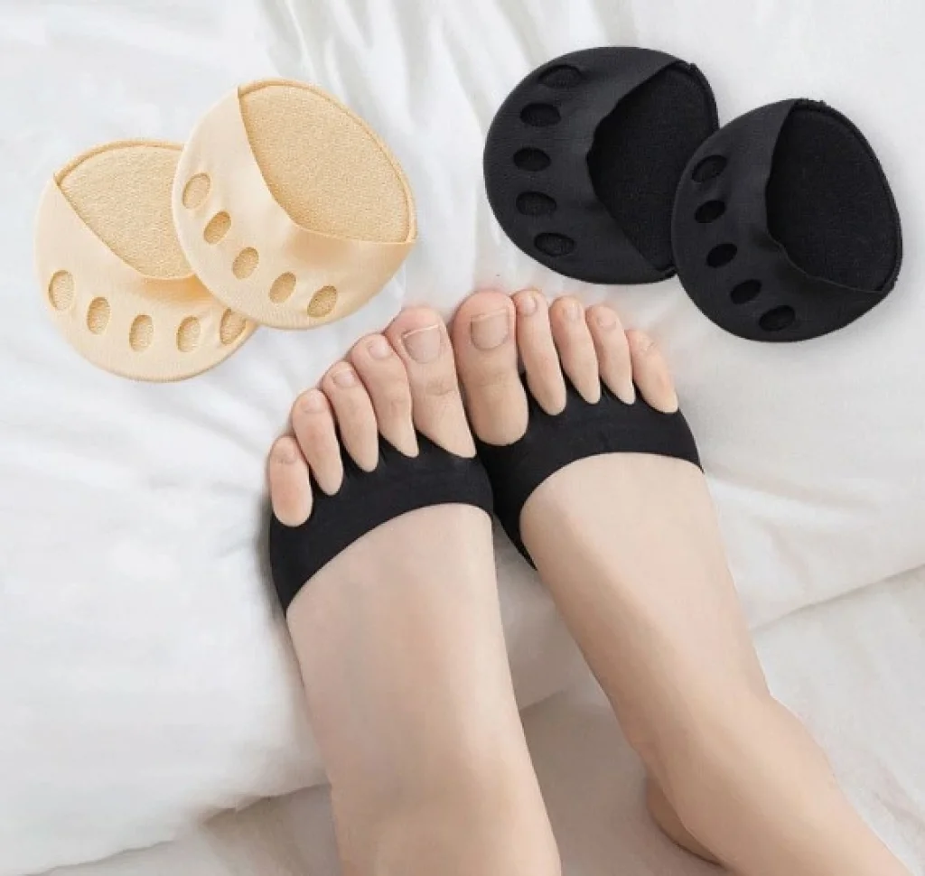 KUMAŞ AYAK PARMAK ALTI DESTEĞİ Ürün Özellikleri Yumuşak pamuklu kumaş, ter emer ve ayağın ileri kaymasını önler.Pamuklu ped, ön ayak bölgesinde basıncın eşit dağılımını sağlar ve şoku emer, ön ayağı korur.Tasarımı, ayak parmaklarının birbirini sıkmasını önler.Yüksek topuk giyerken ayaklarınızın yükünü azaltmak için uygundur.Ayak ağrısını önemli ölçüde rahatlatır.Ürün Renkleri : Siyah, Ten(STOK DURUMUNA GÖRE KARIŞIK RENK GÖNDERİLECEKTİR.)Paket İçeriği2 adet kumaş ayak parmak altı desteği