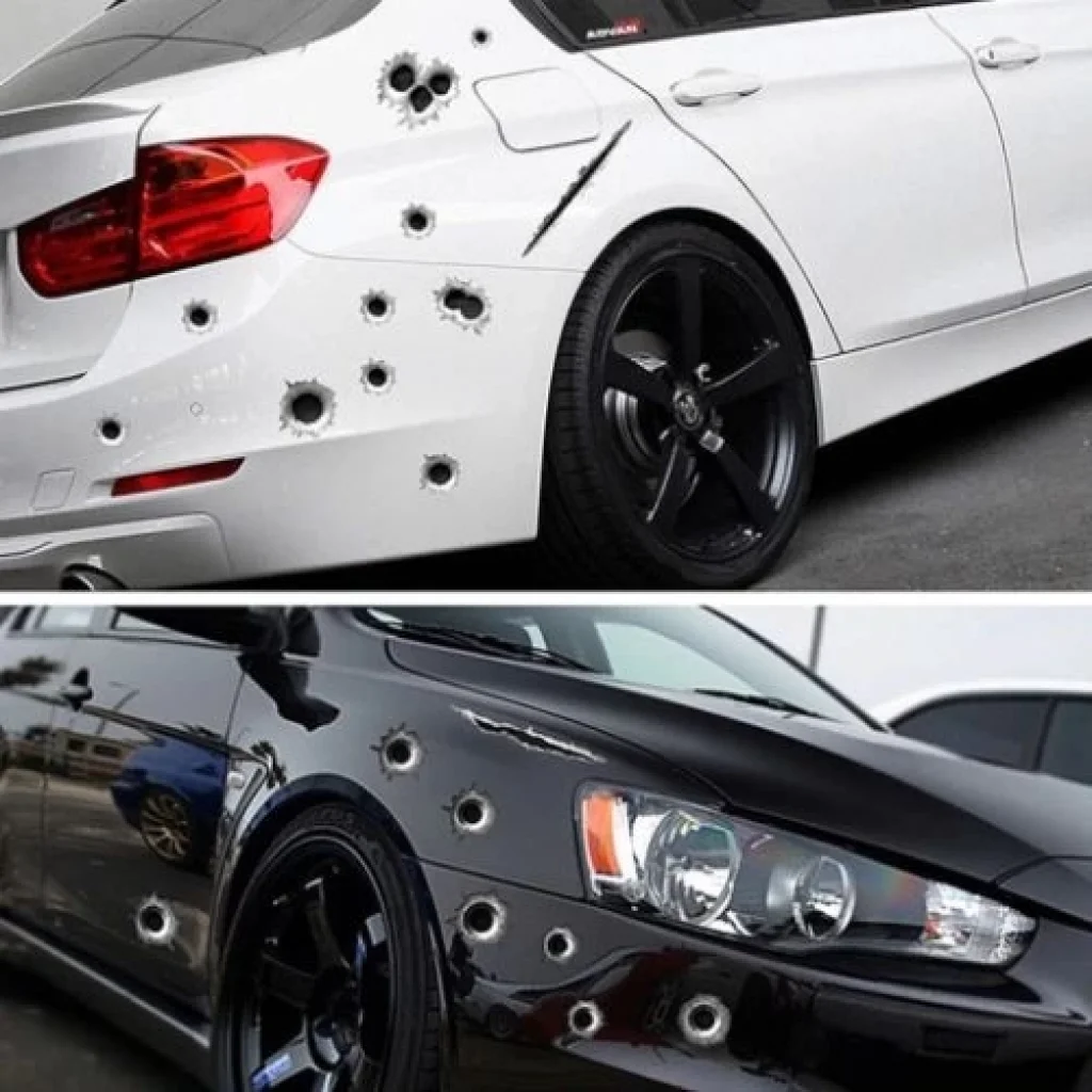 KURŞUN İZİ STICKER3 Boyutlu ve gerçekçidir.İlk bakışta bütün dikkatleri üzerinize çekmenize sebep verecek olan Kurşunİzi Sticker, aracınızın görüntüsünü baştan aşağıya değiştirecek bir ürün.Kurşun İzi Stickerı aracınıza uyguladıktan sonra trafikte size adeta hiçkorna çalınmadığına şahit olacaksınız.Eğlenmeyi sevenler,farklılıklardan hoşlananlar ve şakacı kişilikler için oldukça yerinde bir üründür.Her model ve araca uygundur. Uygulanışı Yapıştırılacak yüzeyi temizleyin vekurulayın.Stickerı kaldırın ve yapıştıracağınızalana bastırarak hava aldırmadan uygulayın.Yapıştırdığınız alanı 24 saat yıkamayın. Ürün Ölçüleri21 Cm. * 30 Cm. Paket İçeriği11 adet kurşun izi sticker6 adet pençe izi sticker
