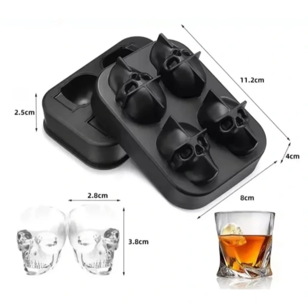KURU KAFA ŞEKİLLİ SİLİKON BUZ KALIBIÜrün ÖzellikleriKuru kafa şekilli silikon buz kalıbı, içecek sunumlarınıza sıra dışı bir hava katar. Detaylı tasarımı sayesinde gerçekçi kuru kafa formunda buzlar elde etmenizi sağlar. Esnek ve dayanıklı silikon malzeme, buzları kalıptan kolayca çıkarmanıza olanak tanır. Gıda ile temasa uygun yapısı sayesinde güvenle kullanılabilir. Özellikle kokteyl, viski gibi içeceklerde şık bir sunum isteyenler için idealdir. Kalıp, yalnızca buz için değil çikolata, sabun ve dekoratif reçine dökümleri için de uygundur. Kolay temizlenebilir ve defalarca kullanılabilir yapısıyla pratiklik sunar.Paket İçeriği1 Adet Kuru Kafa Şekilli Silikon Buz Kalıbı