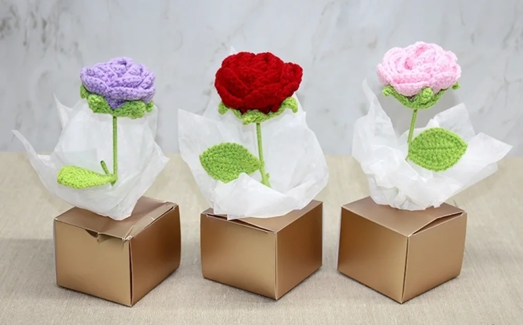 KUTULU TEKLİ EL ÖRGÜSÜ GÜL Ürün ÖzellikleriKutulu Tekli El Örgüsü Gül, tamamen el emeği ile hazırlanmış dekoratif ve zarif bir çiçek modelidir. 26x8 cm boyutundaki kompakt yapısı sayesinde masa üstü dekorlarında, hediye sunumlarında, özel gün kutlamalarında ve fotoğraf çekimi konseptlerinde şık bir tamamlayıcı olarak kullanılabilir. Yumuşak örgü dokusu ve estetik gül formu ürüne sıcak, romantik ve doğal bir görünüm kazandırırken, alt kısmındaki dekoratif kutu detayları ürünü hem sergilemeye hem de hediye etmeye uygun bir hale getirir. El işçiliği ile üretildiğinden her bir gül kendine özgü bir karakter taşır. Renk seçimi yapılamaz; görselde yer alan renklerden biri olarak gönderilir. El yapımı dekoratif ürün sevenler için ideal bir seçenektir.Paket İçeriği1 adet Kutulu Tekli El Örgüsü Gül