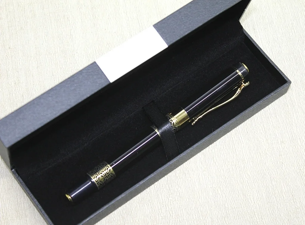 KUTULU TEKLİ TÜKENMEZ KALEM MODEL 24Ürün ÖzellikleriKutulu Tekli Tükenmez Kalem Model 24, siyah parlak gövdesi ve altın ton işlemeli detaylarıyla klasik ve prestijli bir tasarım sunar. Gövde üzerinde yer alan dekoratif altın desen halkalar kaleme özgün bir karakter kazandırırken, metal klips detayı profesyonel bir görünüm sağlar. Dengeli yapısı sayesinde elde rahat bir tutuş sunan bu metal tükenmez kalem, hem günlük kullanım hem de resmi ortamlarda tercih edilebilecek şık bir seçenektir. Özel sert kapaklı kutusu içerisinde sunulan kutulu şık kalem, kurumsal hediyelik olarak değerlendirilebilecek zarif bir alternatiftir. Modern ve klasik çizgileri bir araya getiren hediyelik tükenmez kalem modeli, ofis masalarında estetik bir tamamlayıcı olarak öne çıkar.Ürün Teknik ÖzellikleriÖzellikAçıklamaÜrün AdıKutulu Tekli Tükenmez Kalem Model 24TipTükenmez KalemGövdeMetal TasarımRenkSiyah Gövde – Altın Desen DetaySunumÖzel Sert Kapaklı Kutu İçerisindeKullanım AlanıOfis, Günlük Kullanım ve HediyelikPaket İçeriği1 Adet Kutulu Tekli Tükenmez Kalem Model 24