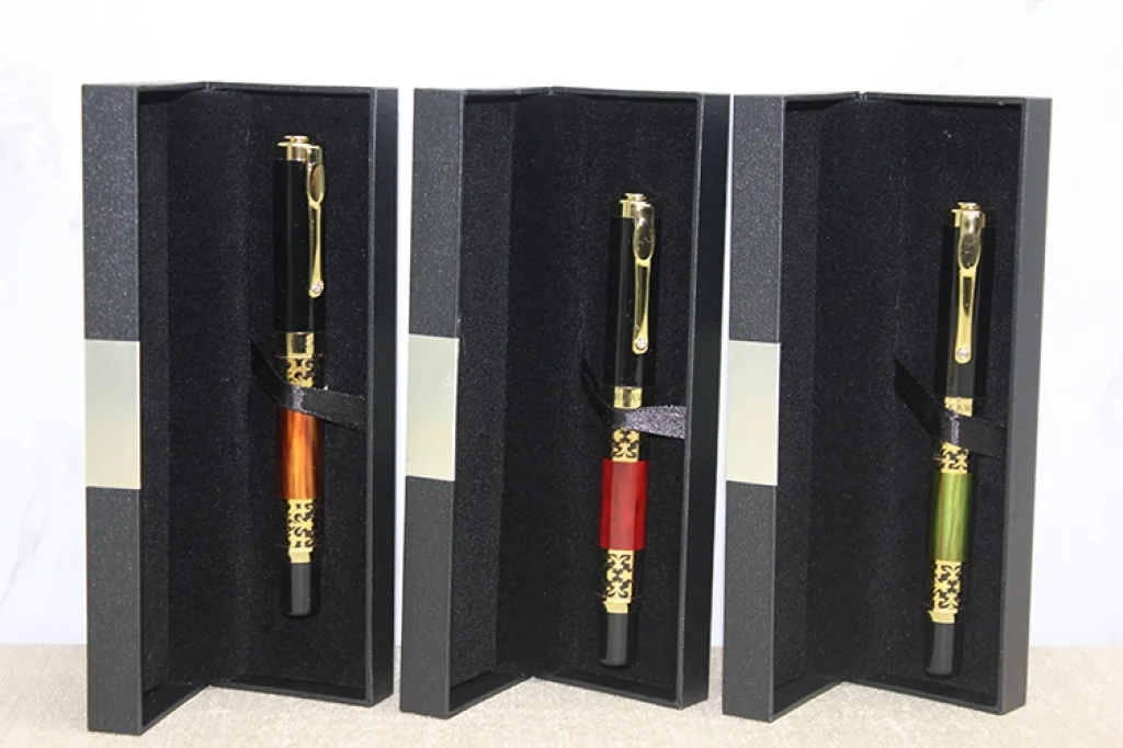 KUTULU TEKLİ TÜKENMEZ KALEM MODEL 29Ürün ÖzellikleriKutulu Tekli Tükenmez Kalem Model 29, parlak siyah üst gövde ve renkli alt gövde tasarımını altın ton desen detaylarıyla birleştiren şık bir modeldir. Orta bölümde yer alan dekoratif altın motifli halka tasarımı kaleme karakteristik bir görünüm kazandırırken, canlı renkli alt gövde ürüne modern bir hava katar. Metal klips detayı ve dengeli yapısı sayesinde hem estetik hem de konforlu bir kullanım sunan bu metal tükenmez kalem, ofis ortamında prestijli bir duruş sergiler. Özel sert kapaklı kutusu içerisinde sunulan kutulu şık kalem, kurumsal hediyelik olarak değerlendirilebilecek zarif bir alternatiftir. Görselde yer alan üç farklı renkten biri karışık olarak gönderilir. Şık tasarımıyla öne çıkan hediyelik tükenmez kalem modeli, hem günlük kullanım hem de özel sunumlar için ideal bir tercihtir.Ürün Teknik ÖzellikleriÖzellikAçıklamaÜrün AdıKutulu Tekli Tükenmez Kalem Model 29TipTükenmez KalemGövdeMetal Tasarım – Desenli Halka DetayRenkKarışık (Görseldeki Üç Renkten Biri)SunumÖzel Sert Kapaklı Kutu İçerisindeKullanım AlanıOfis, Günlük Kullanım ve HediyelikPaket İçeriği1 Adet Kutulu Tekli Tükenmez Kalem Model 29