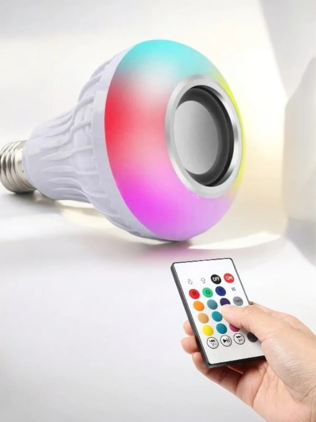 BLUETOOTH BAĞLANTILI LAMBA HOPARLÖR Bluetooth Hoparlör Ve Led Lamba Uzaktan Kumandalı Ürünün Boyutu: 13.6cm x 9.3 Voltaj: 100-240v/50-60hz Güç: 12w rms Led güç: 7w Hoparlör Güç: 3W RMS Frekans Tepkisi: 135hz 15 khz Bluetooth Görüş: 3.0 Yapılandırma Destek: A2DP Radyo Aralığı: 10m( 33ft) Led Işık Rengi: Karışık renk Lamba Tabanı: E27 Akıllı LED Ampul müzik ile ışık birleştirmek ve uyumlu mobil cihazınızdan kontrol etmenizi sağlar. Android 2.3.3 destekler. iPhone destekler bunun için IOS 7.0 ve sonraki sürümleri ile sadece QR kodunu tarayın ve uygulamayı indirin.Ürün Markası: BUĞZ