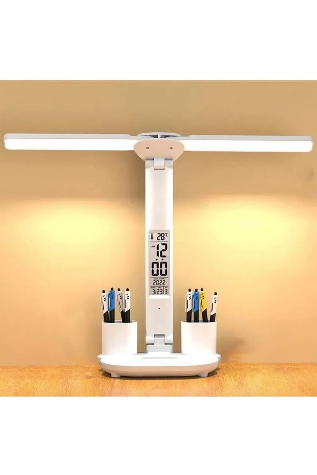 5in1 Çok Fonksiyonlu Şarjlı Masa Lambası+Saat+Termometre+Takvim+Kalemlik+Telefon Tutucu