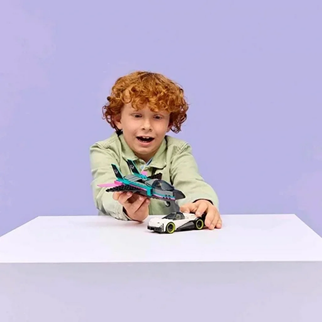 LEGO ara.ccedil;lar spor araba ve jet u.ccedil;ağı oyun setini daha da eğlenceli hale getirin. Sette 259 par.ccedil;a bulunur.